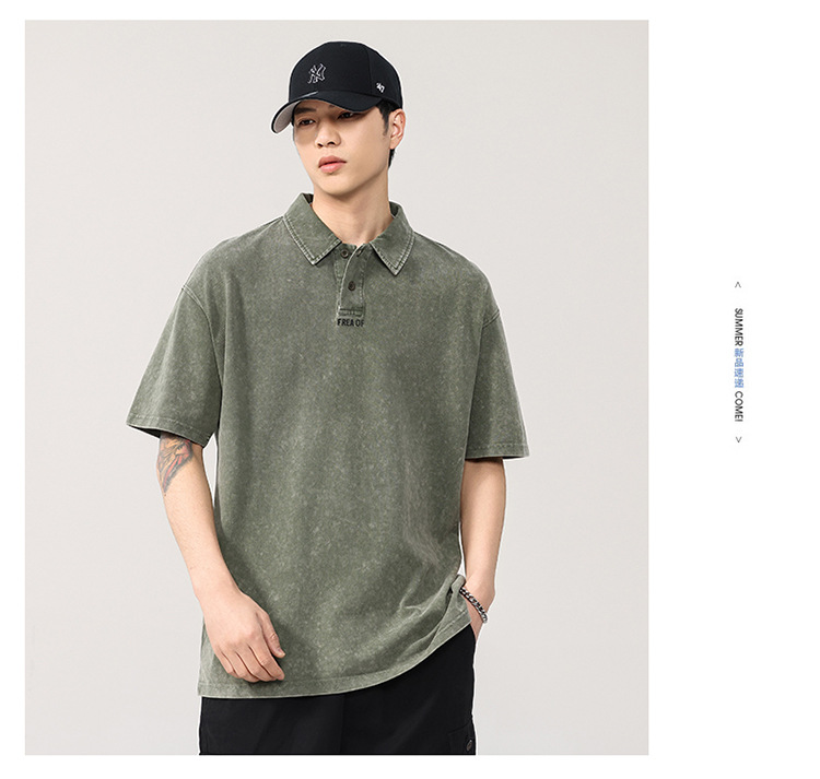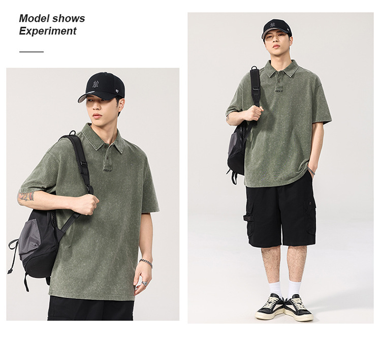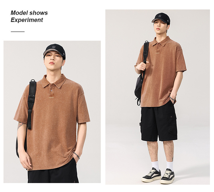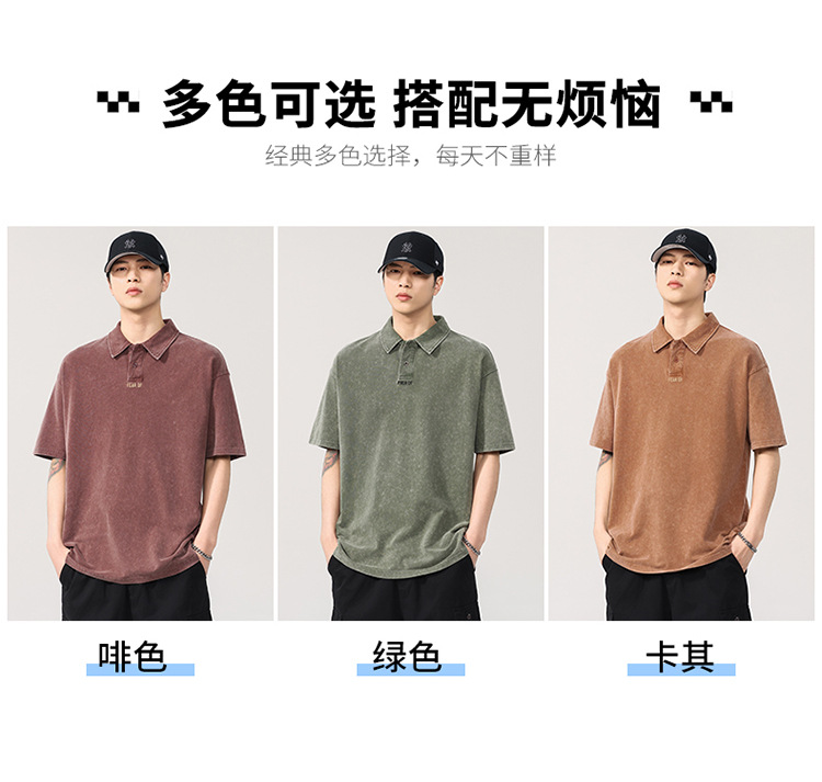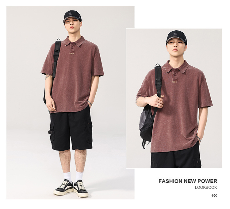 260g 헤비급 워터 시스템 남성용 반팔 티셔츠 루즈 피케 코튼 폴로 셔츠 남성용 대형 트렌디 폴로 칼라 탑스토어 가기