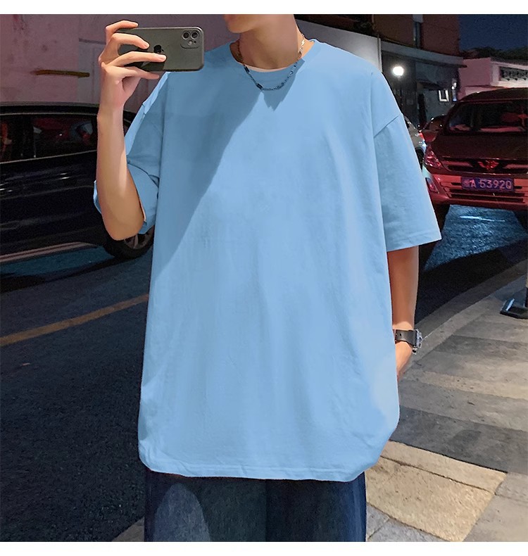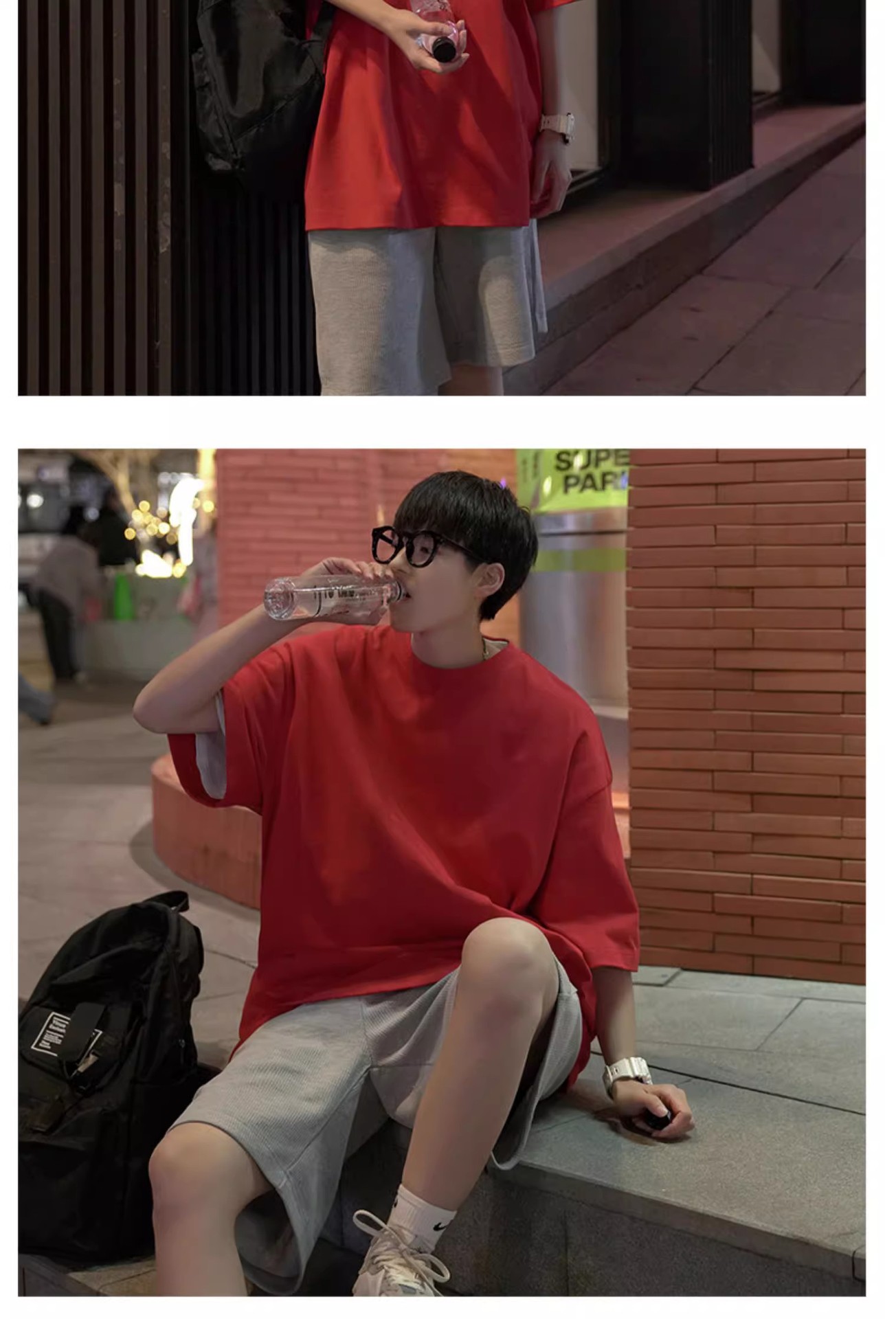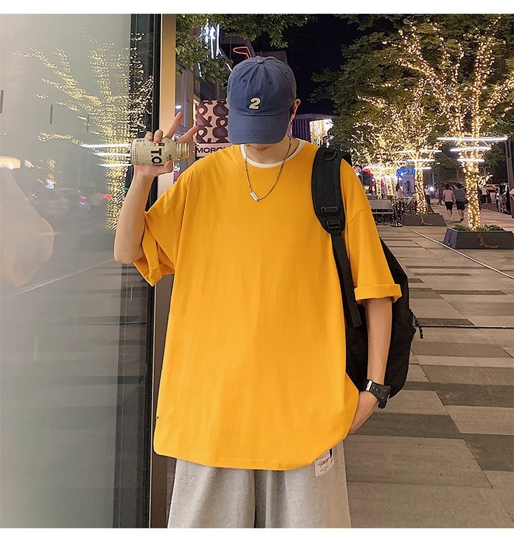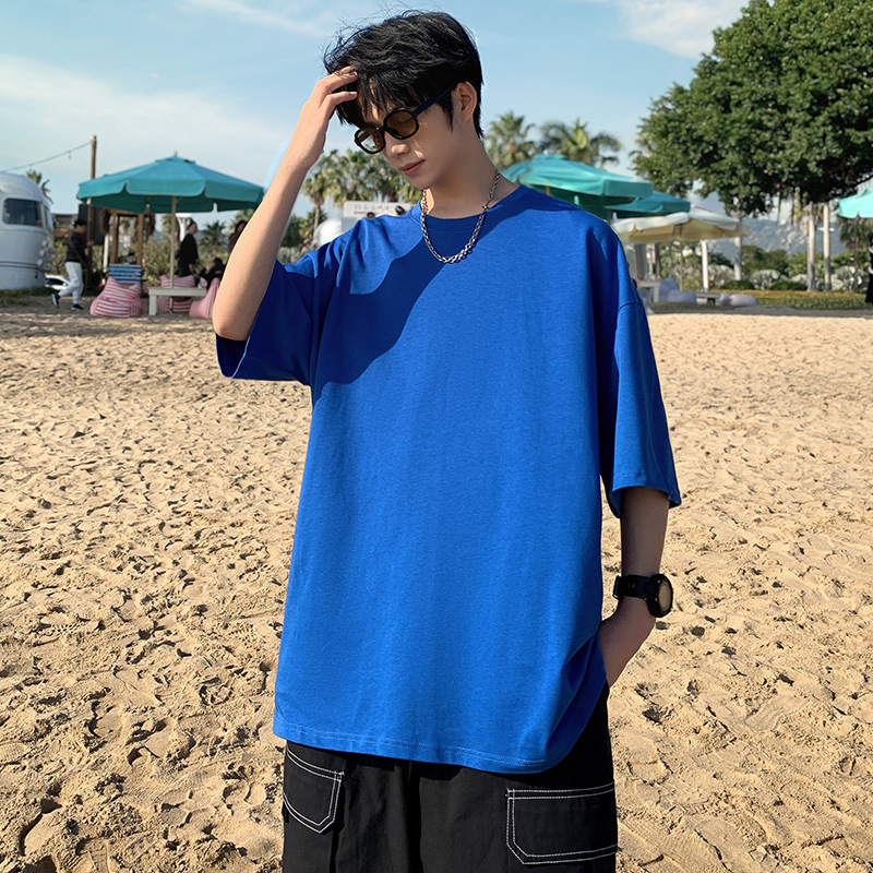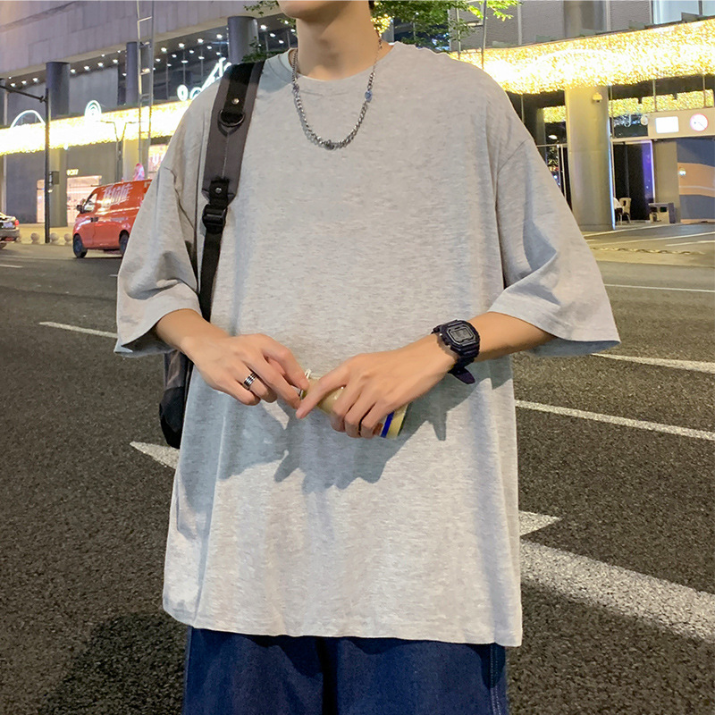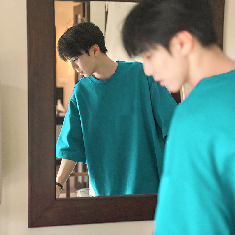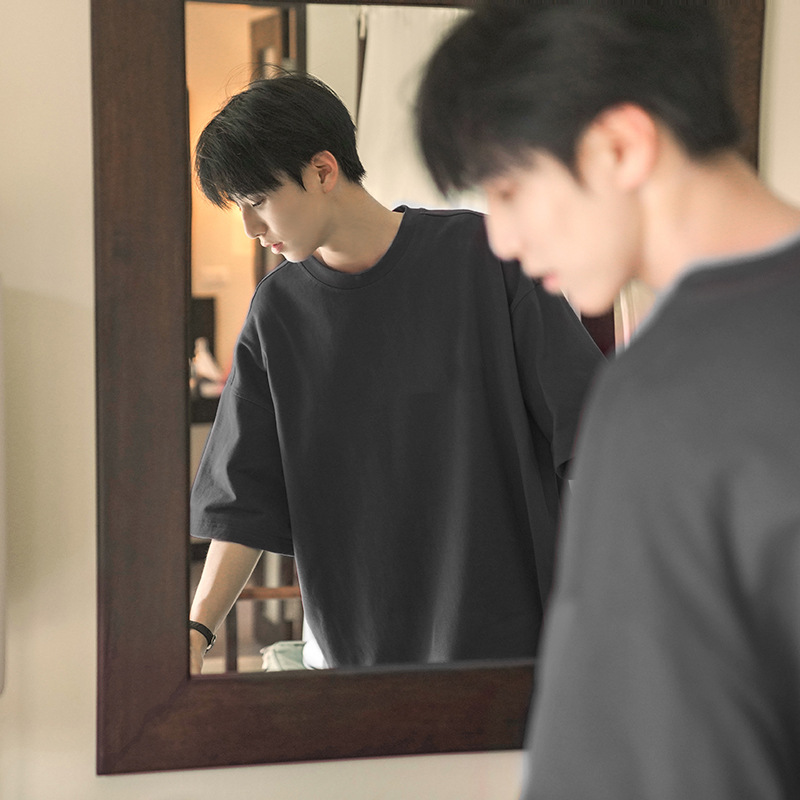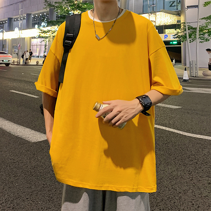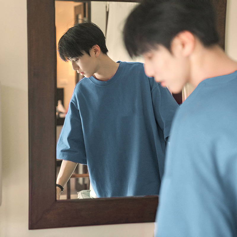 소스 제조업체 소년용 솔리드 컬러 티셔츠 여름 트렌드 루즈 캐주얼 심플 5부 소매 티셔츠 도매 국경 간스토어 가기