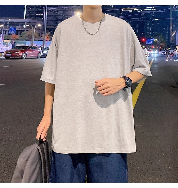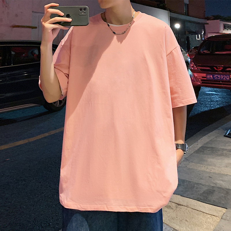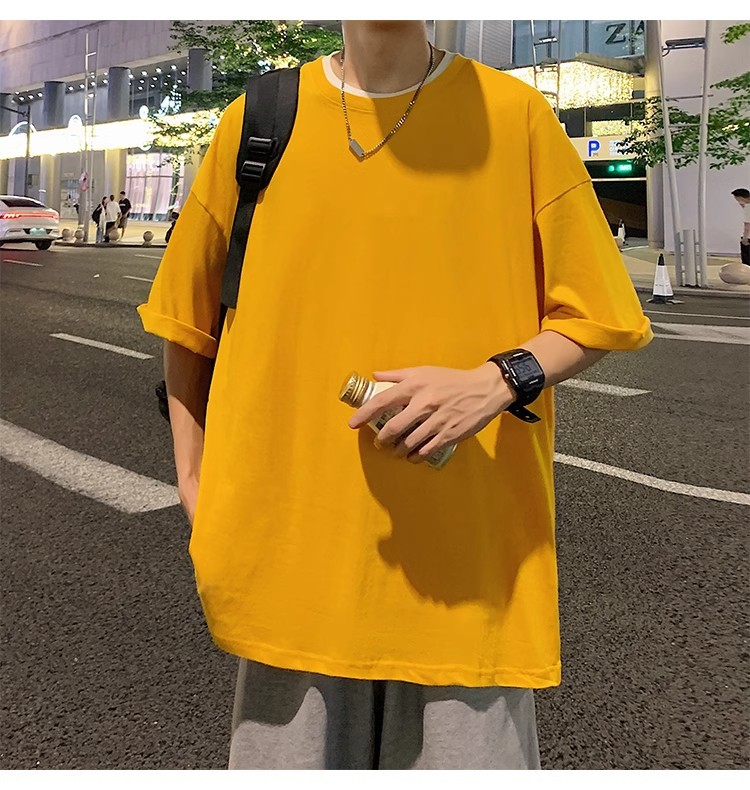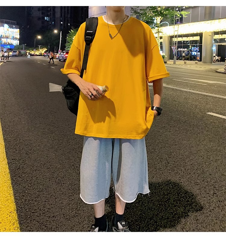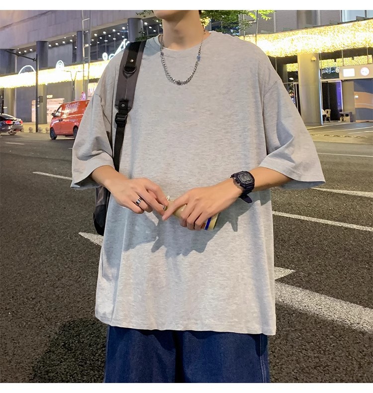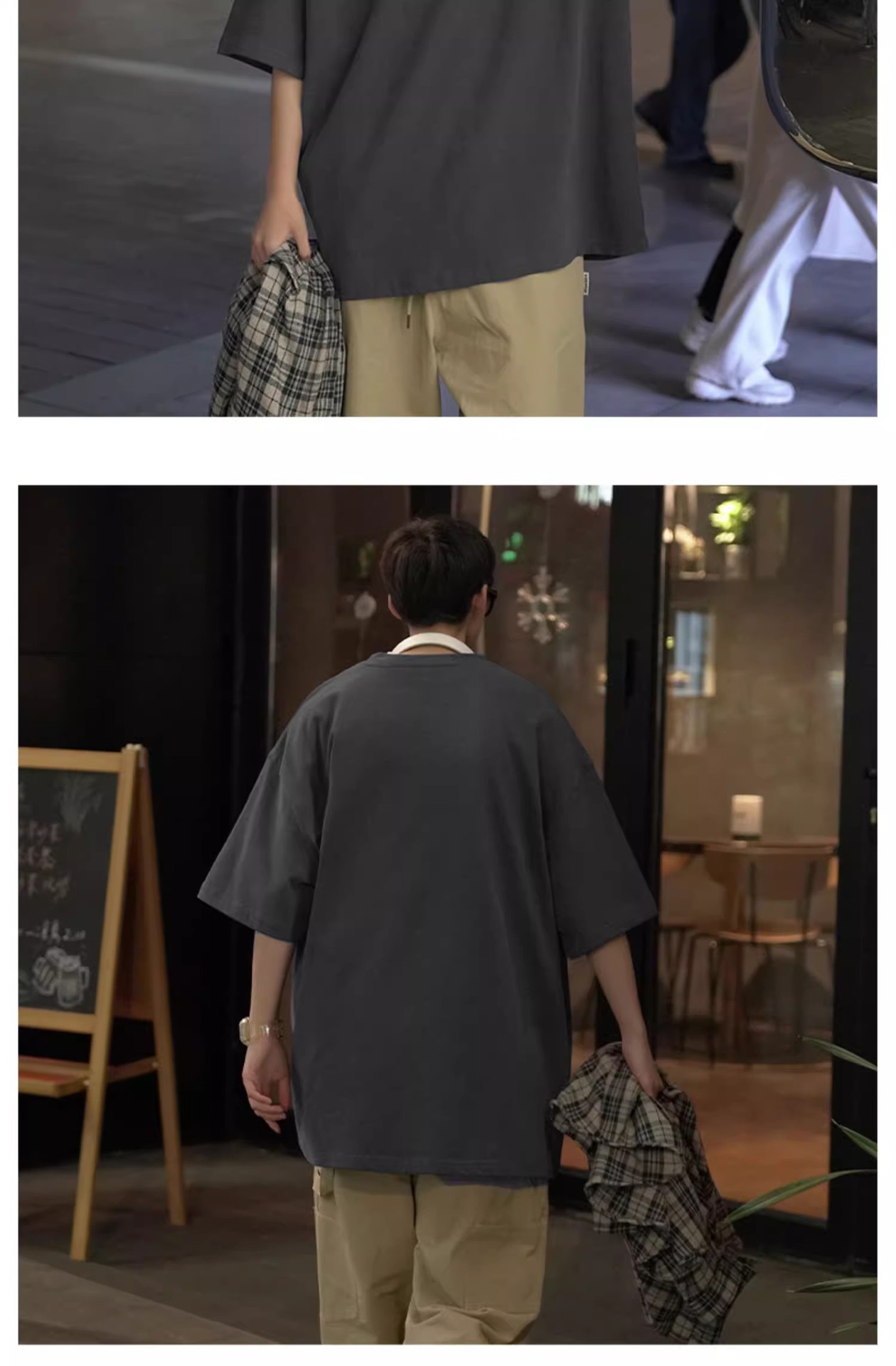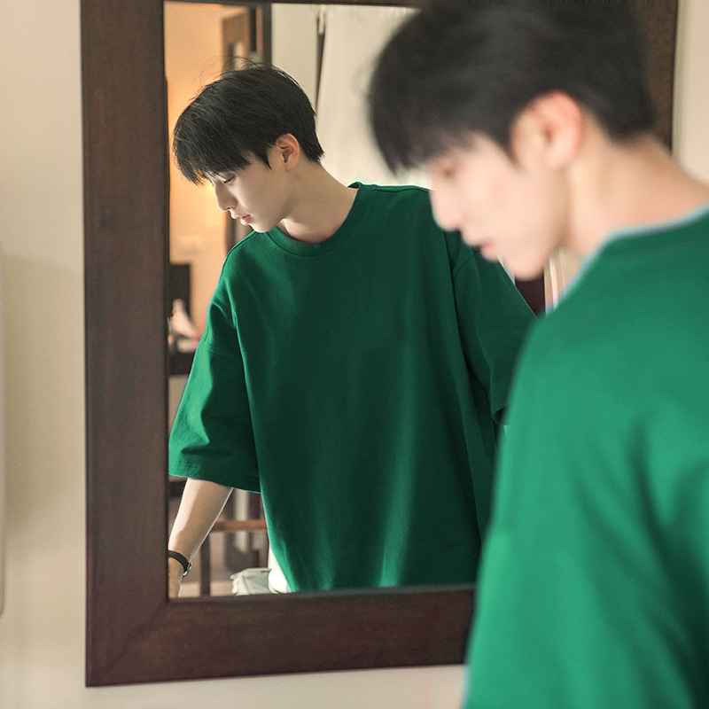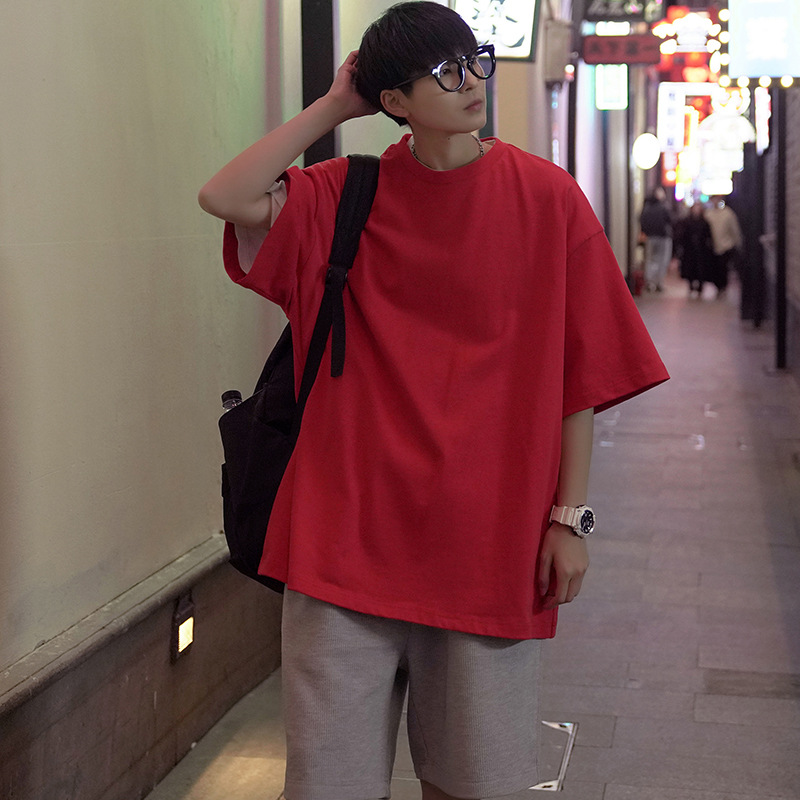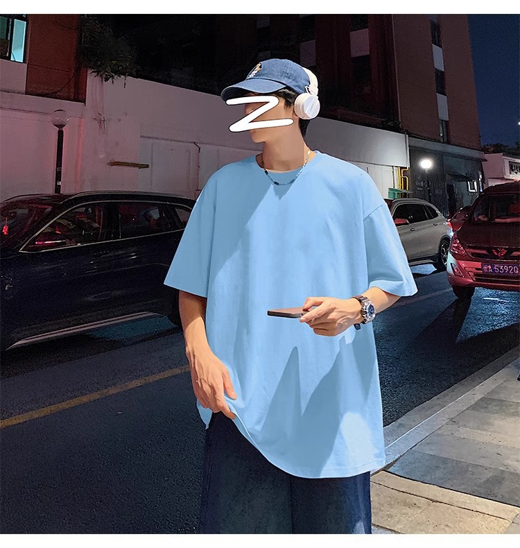 소스 제조업체 소년용 솔리드 컬러 티셔츠 여름 트렌드 루즈 캐주얼 심플 5부 소매 티셔츠 도매 국경 간스토어 가기