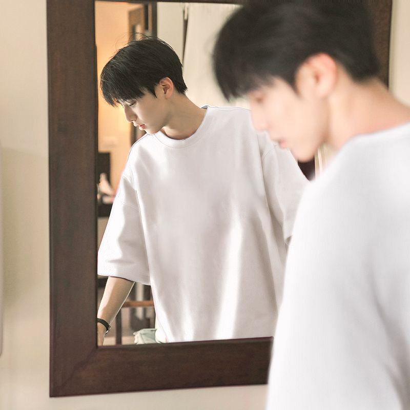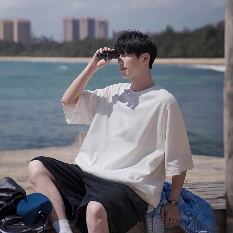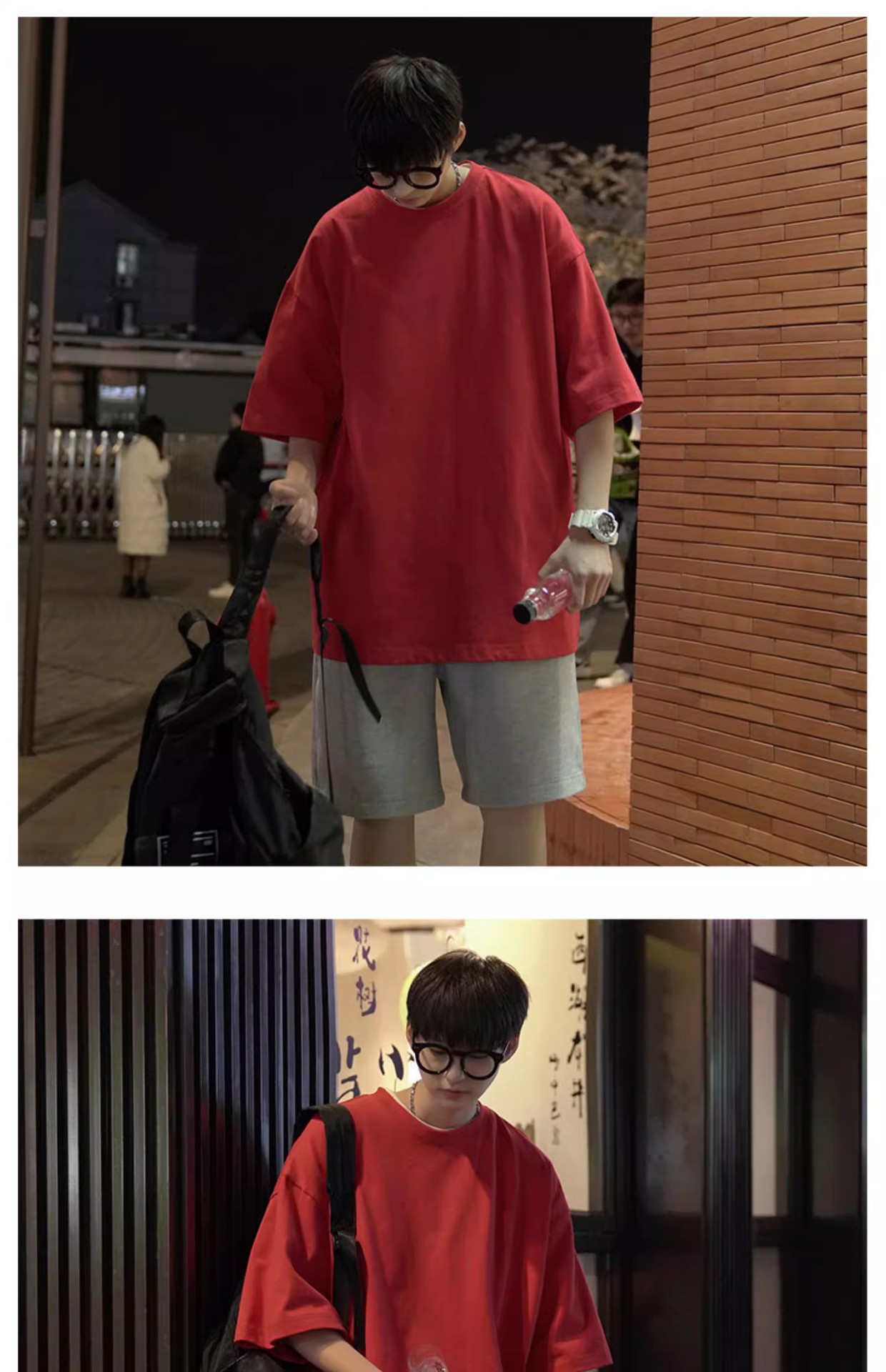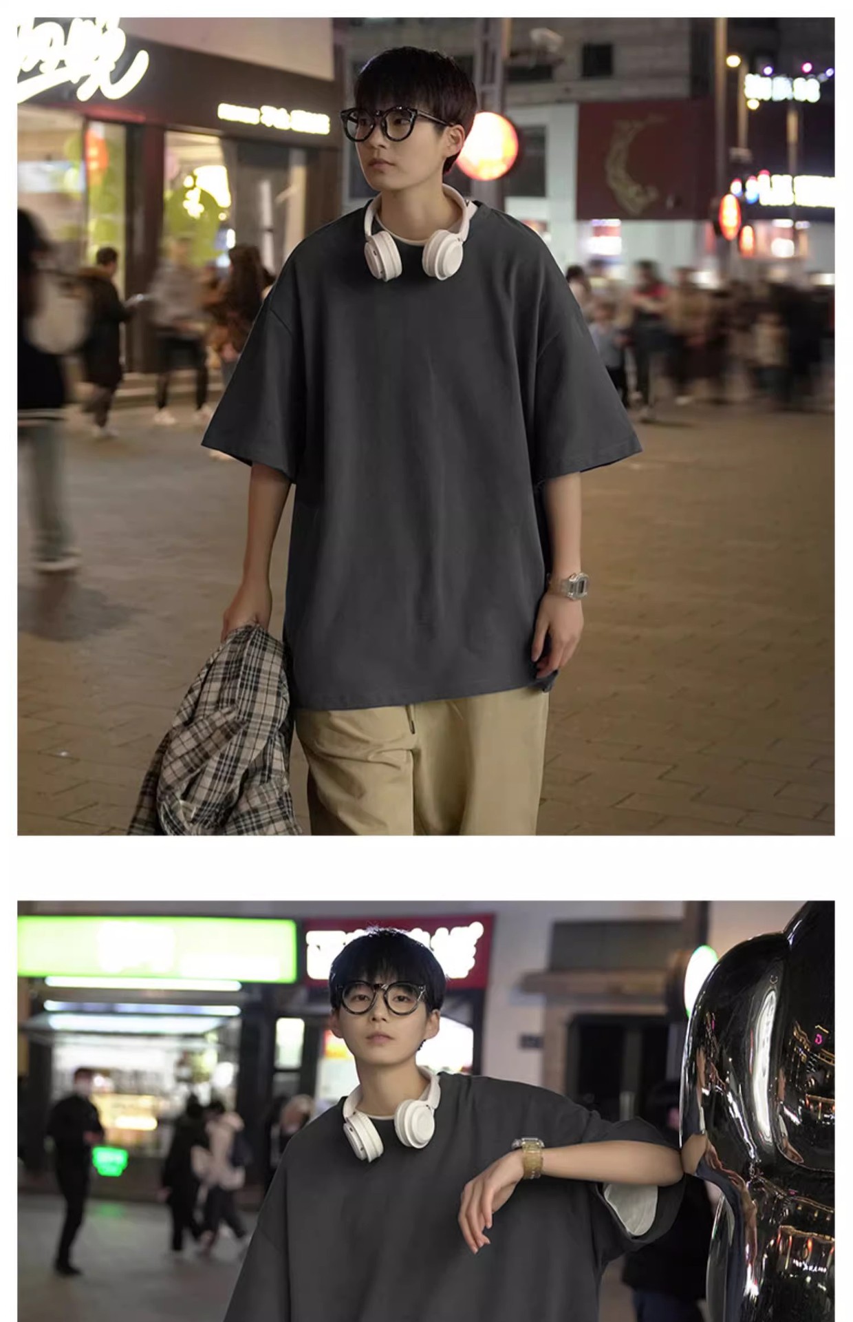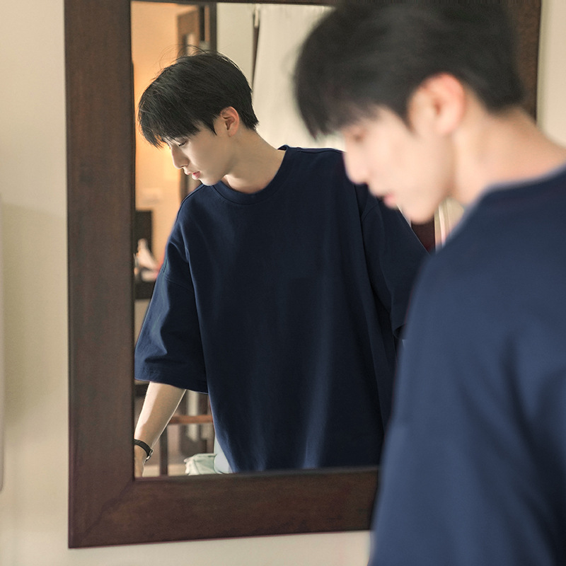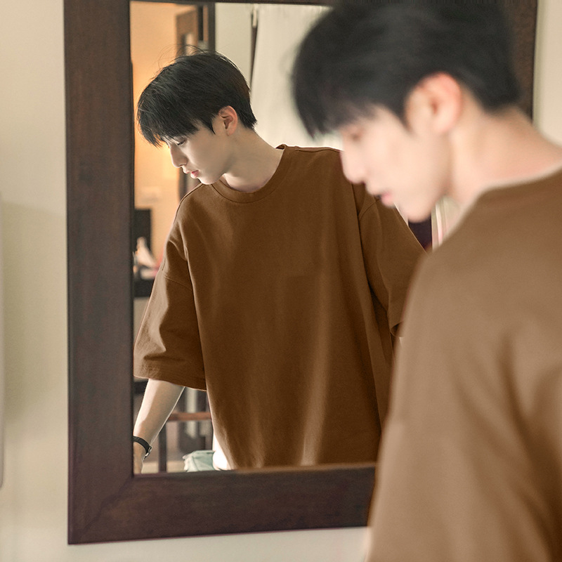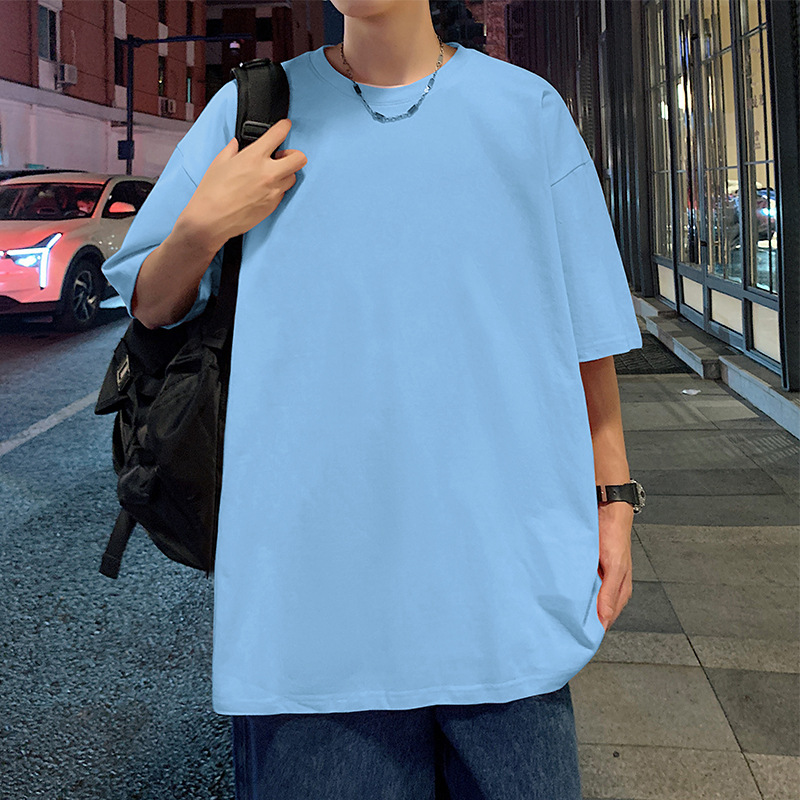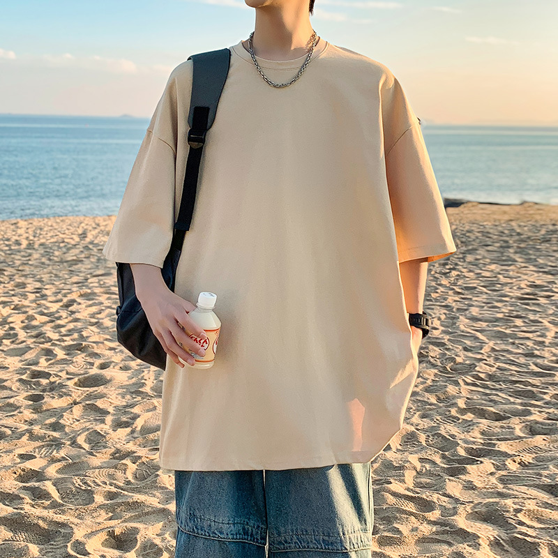 소스 제조업체 소년용 솔리드 컬러 티셔츠 여름 트렌드 루즈 캐주얼 심플 5부 소매 티셔츠 도매 국경 간스토어 가기