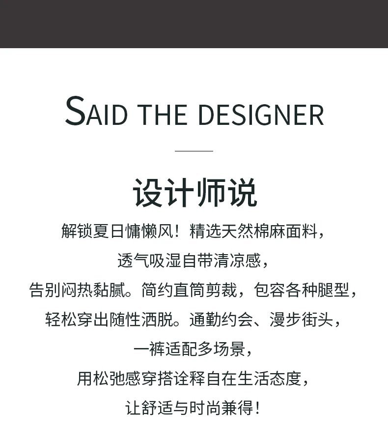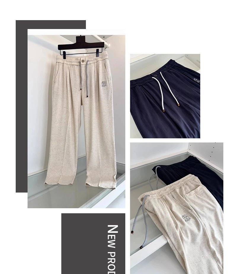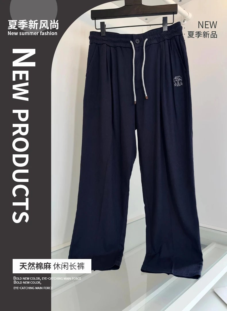 这款男士高端棉麻运动休闲长裤,将时尚与舒适完美融合。采用天然棉麻材质,触感轻盈柔软,透气性极佳,炎炎夏日也能时刻保持清爽自在。裤身精致的品牌 logo 刺绣,低调彰显品质格调,成为穿搭点睛之笔。兼具运动的活力与休闲的随性,无论是日常出行、运动健身,还是朋友聚会,都能轻松驾驭,打造时尚百搭造型。全新设计,匠心工艺,助你轻松抢占夏日时尚 C 位,解锁更多穿搭可能!