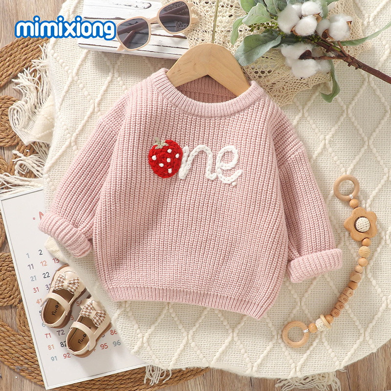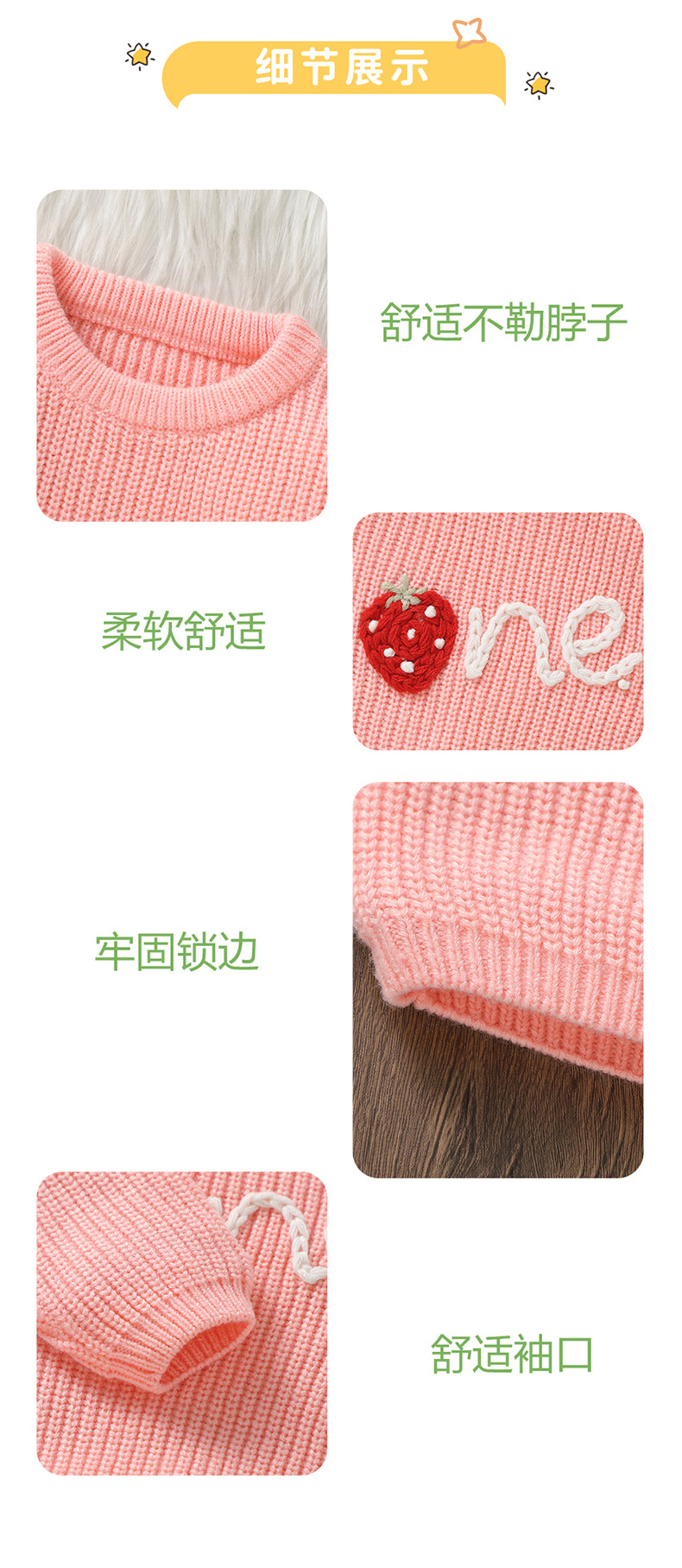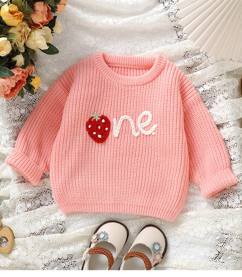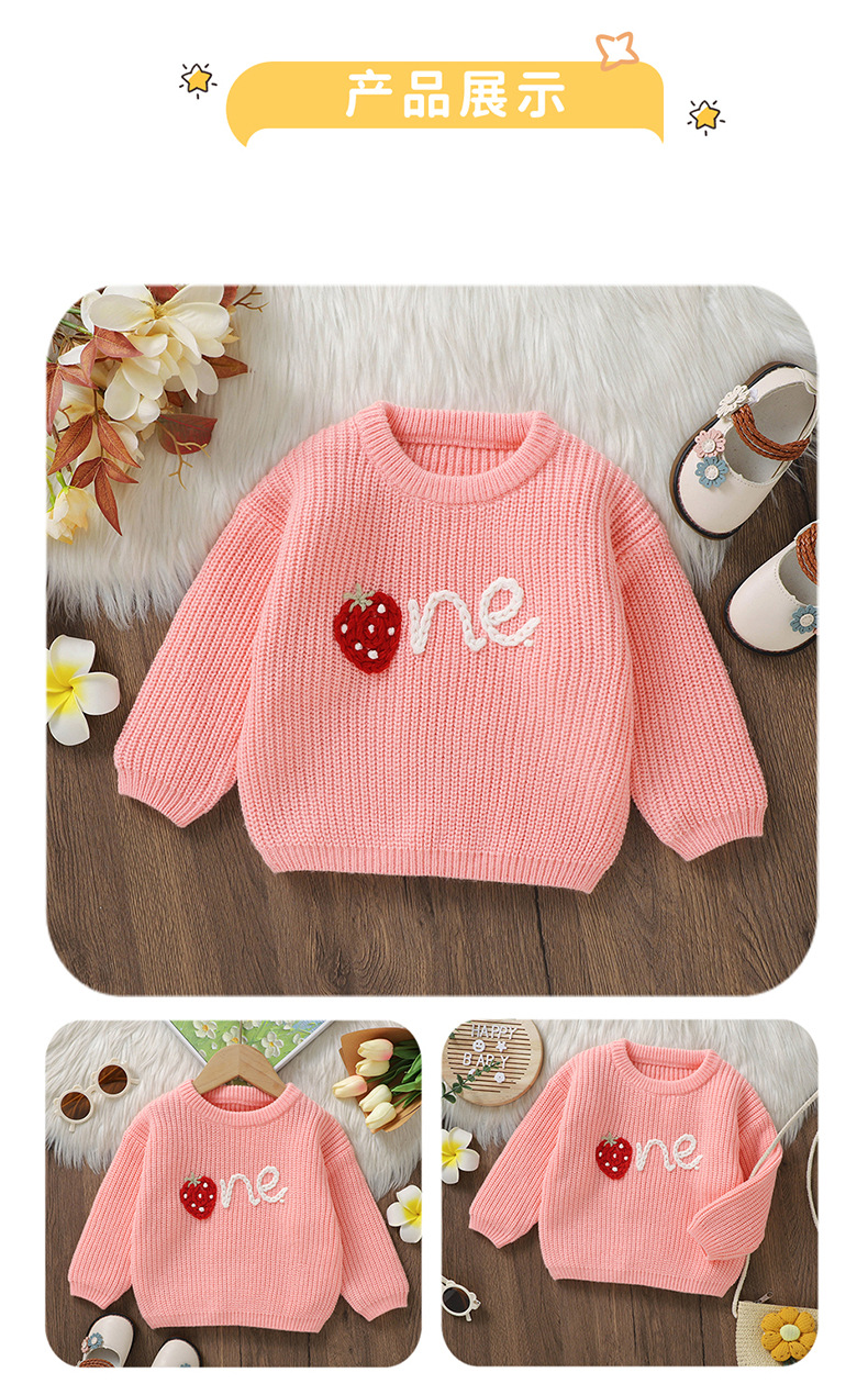 남성과 여성의 아기 새로운 니트 라운드 넥 풀오버 탑 딸기 자수 패턴 스웨터스토어 가기