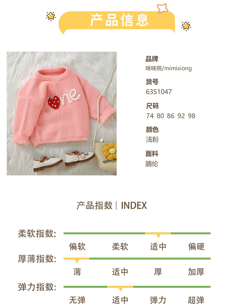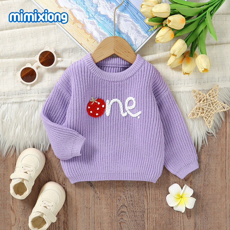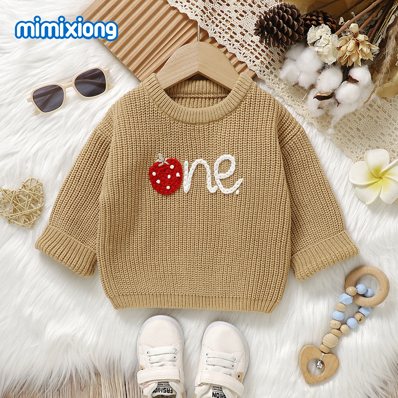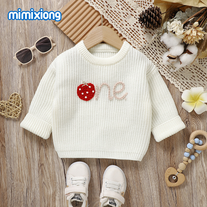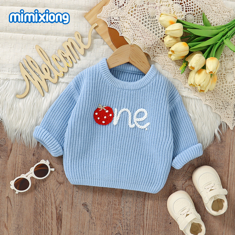 남성과 여성의 아기 새로운 니트 라운드 넥 풀오버 탑 딸기 자수 패턴 스웨터스토어 가기