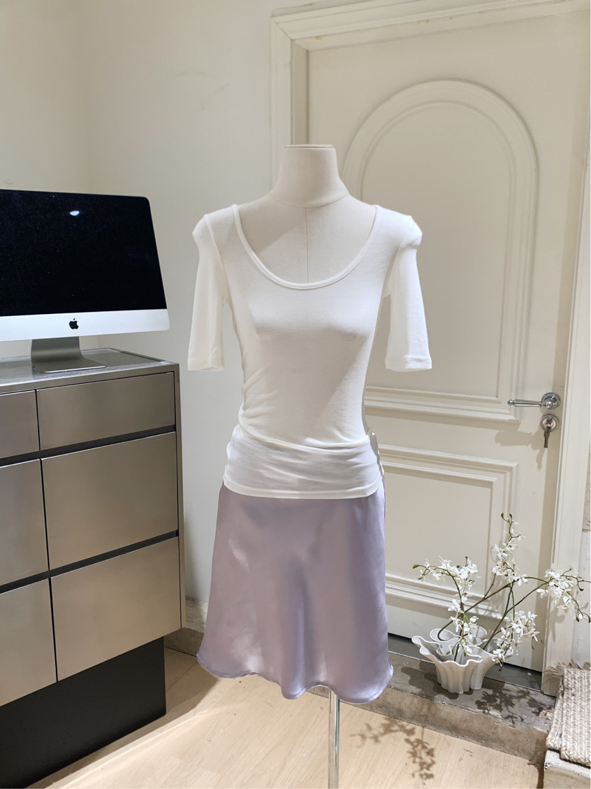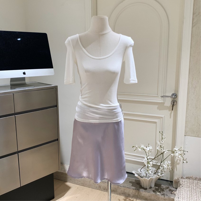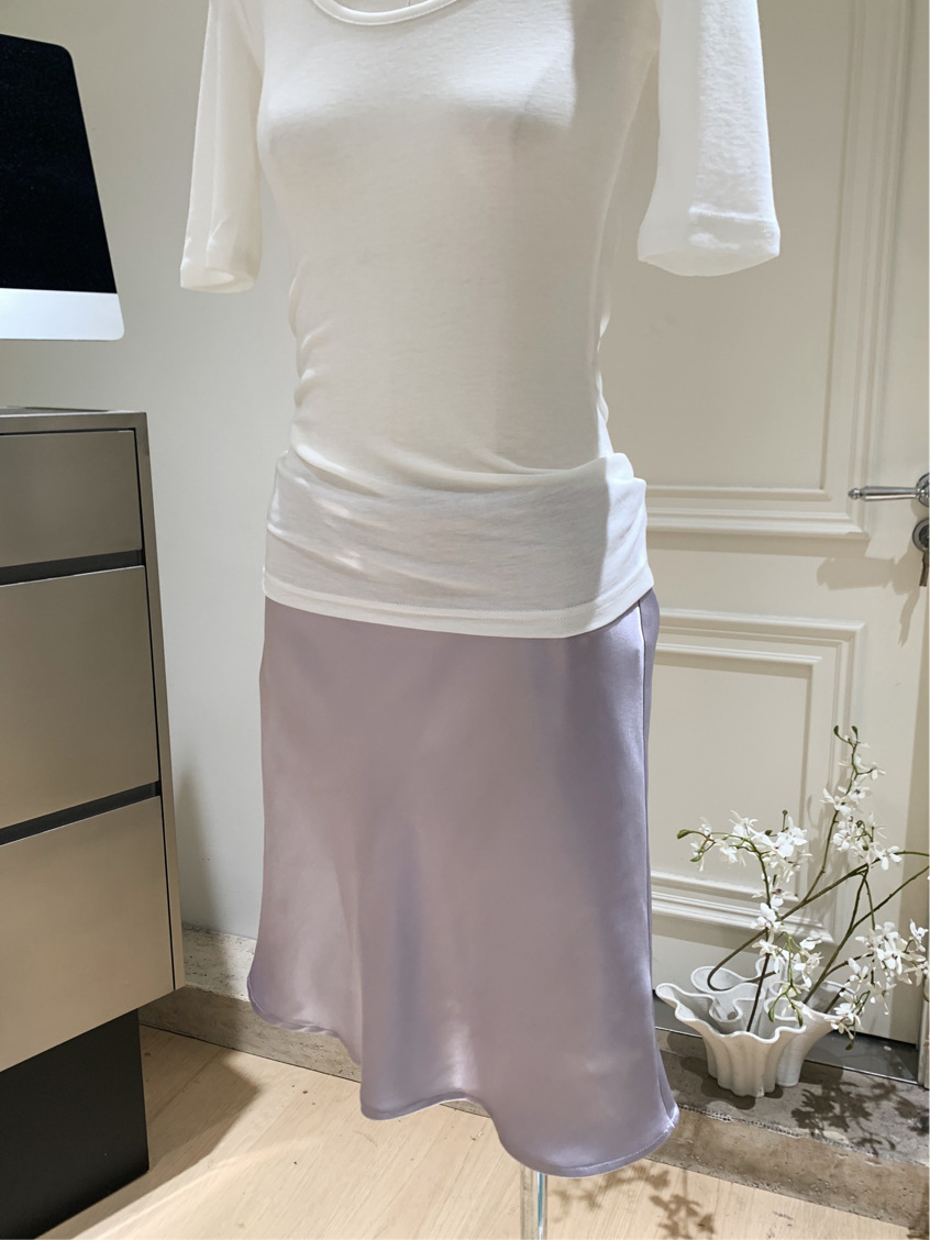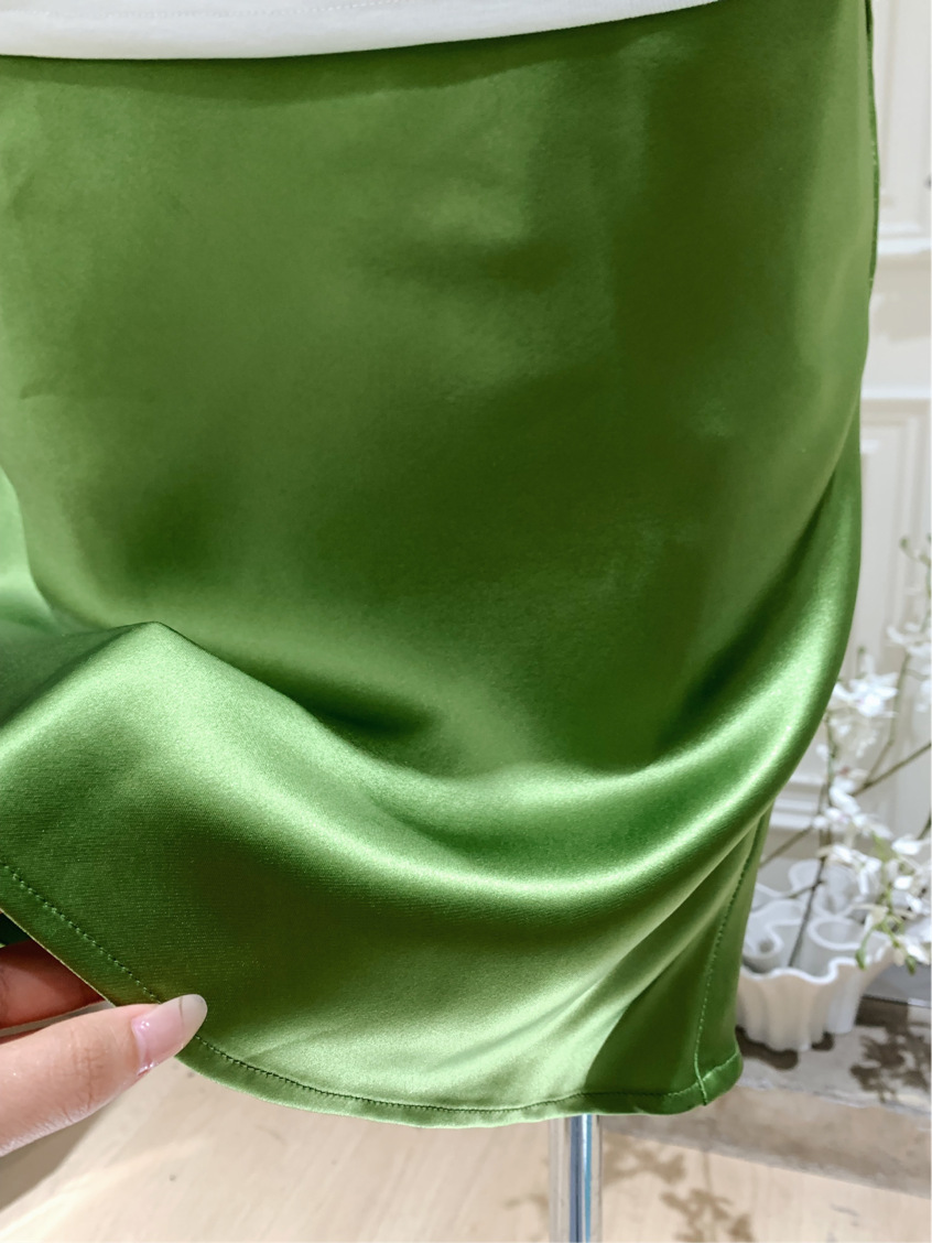 여성을위한 새틴 느낌 아세테이트 스커트 2025 여름 새로운 스타일 현대적인 사이드 히든 지퍼 바이어스 컷 짧은 스커트스토어 가기