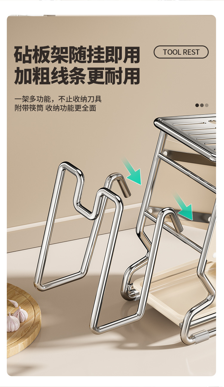 • [솔리드 스테인레스 스틸] 유백색 칼꽂이 + 도마걸이