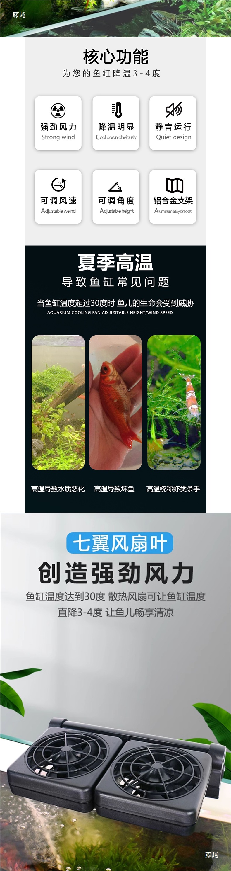 수조 팬 냉각 냉각 막대 라디에이터 미니 온도 조절 수족관 잔디 새우 탱크 냉각기 냉각 팬