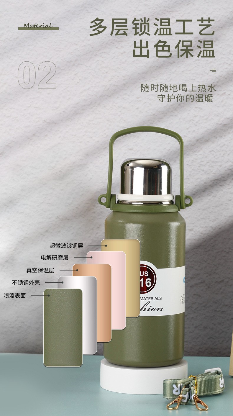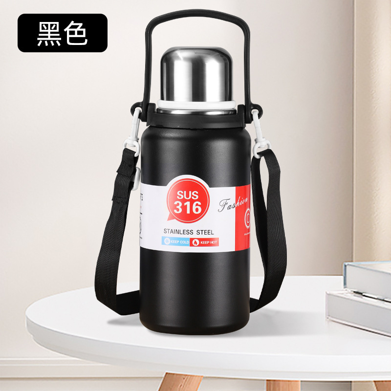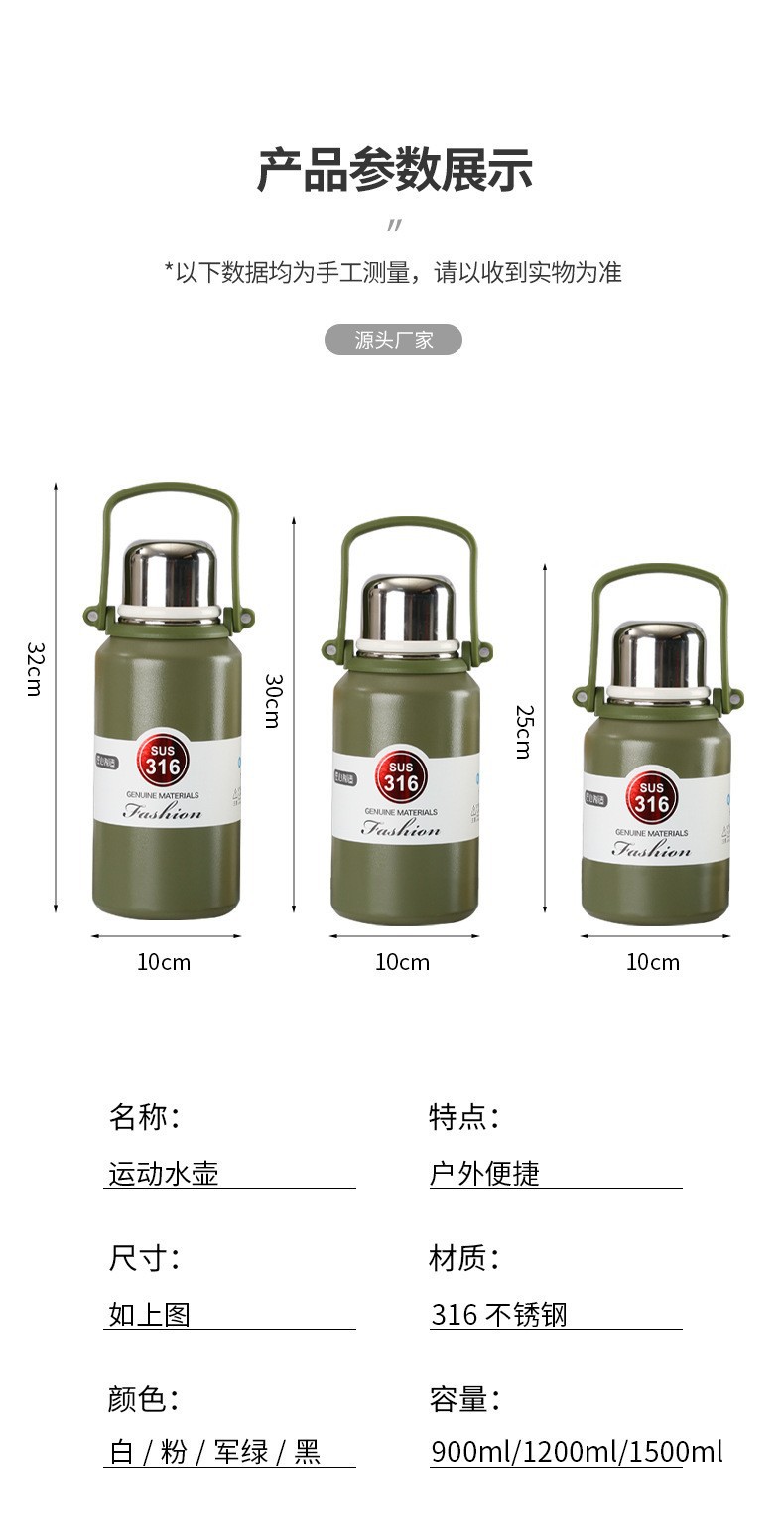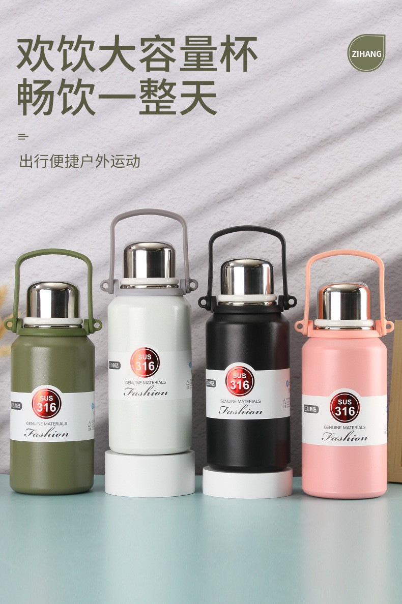 야외 대용량 316 스테인레스 스틸 보온병 컵, 간단하고 휴대 가능하며 자동차 탑승식 대형 배수구 물컵, 손잡이 여행용 주전자스토어 가기