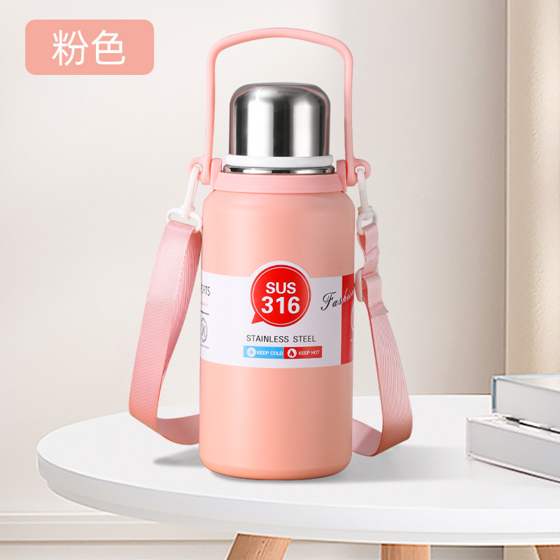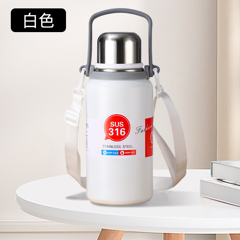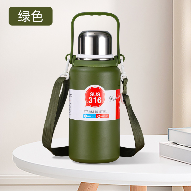 야외 대용량 316 스테인레스 스틸 보온병 컵, 간단하고 휴대 가능하며 자동차 탑승식 대형 배수구 물컵, 손잡이 여행용 주전자