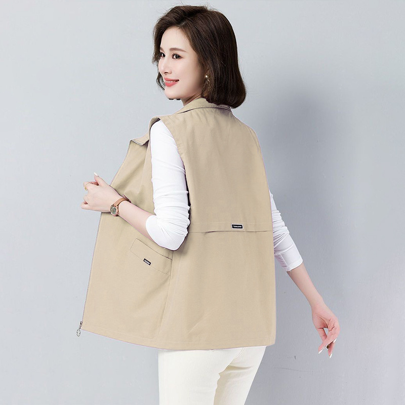 여성용 조끼 2025 봄, 가을 새로운 느슨한 캐주얼 조끼 겉옷 중년 어머니 조끼 민소매 자켓