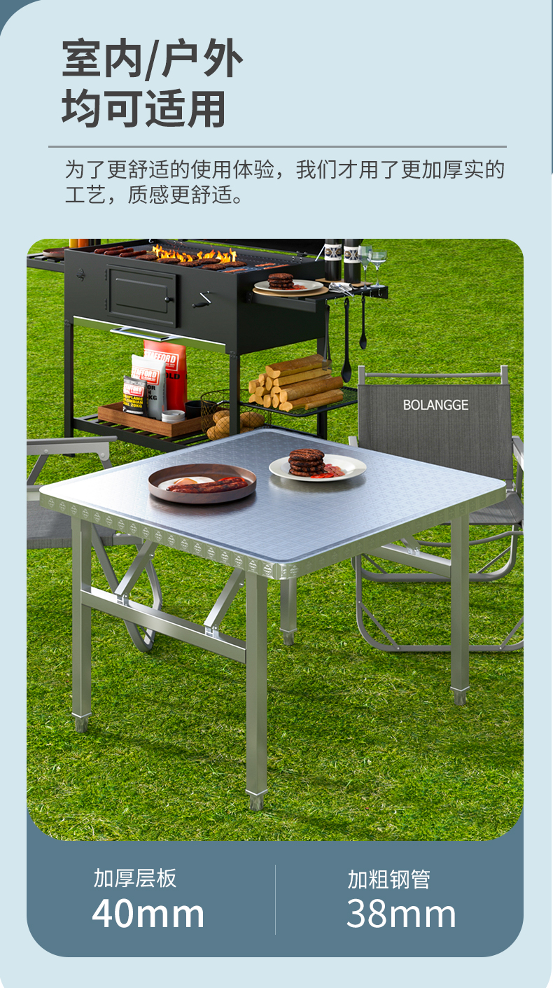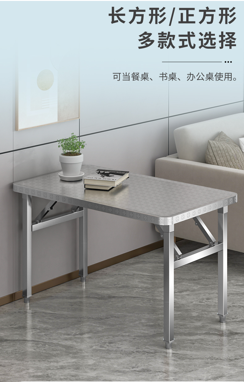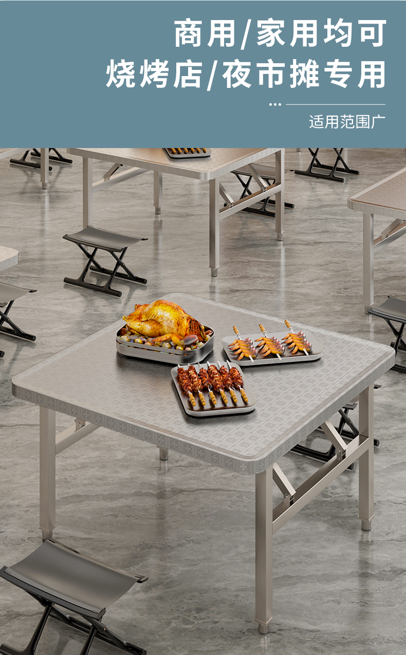스테인레스 스틸 접이식 테이블 휴대용 바베큐 테이블 야외 스톨 상업용 야시장 간단한 식탁 작은 사각형 테이블 둥근 모서리스토어 가기