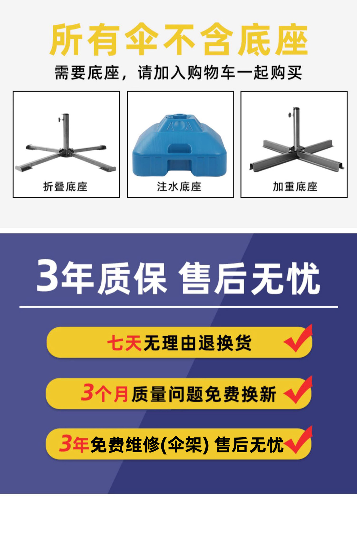 • 2.2m 실버 글루 레드(스티어링 우산) 3단 우산 프레임 + 30L 물 충전 베이스