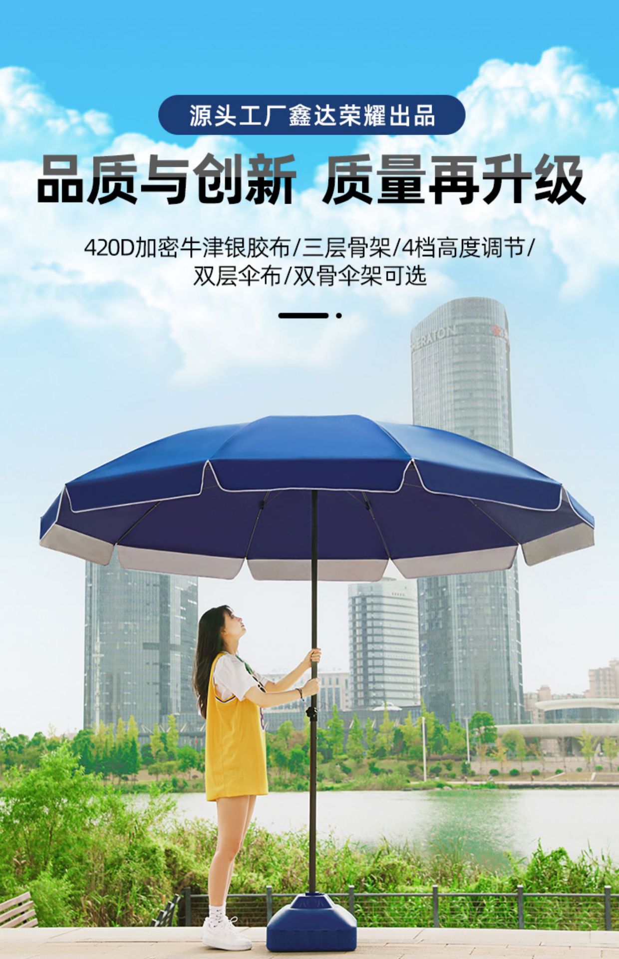 • 2.2m 실버 글루 블루(스티어링 우산) 3단 우산 프레임 + 30L 물 충전 베이스
