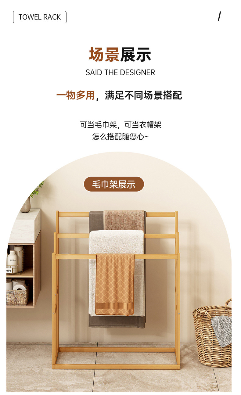 수건걸이, 욕실, 화장실, 대나무 디스플레이, 바지걸이, 수납선반, 목욕타월, 탈부착 가능, 바닥에서 간단함