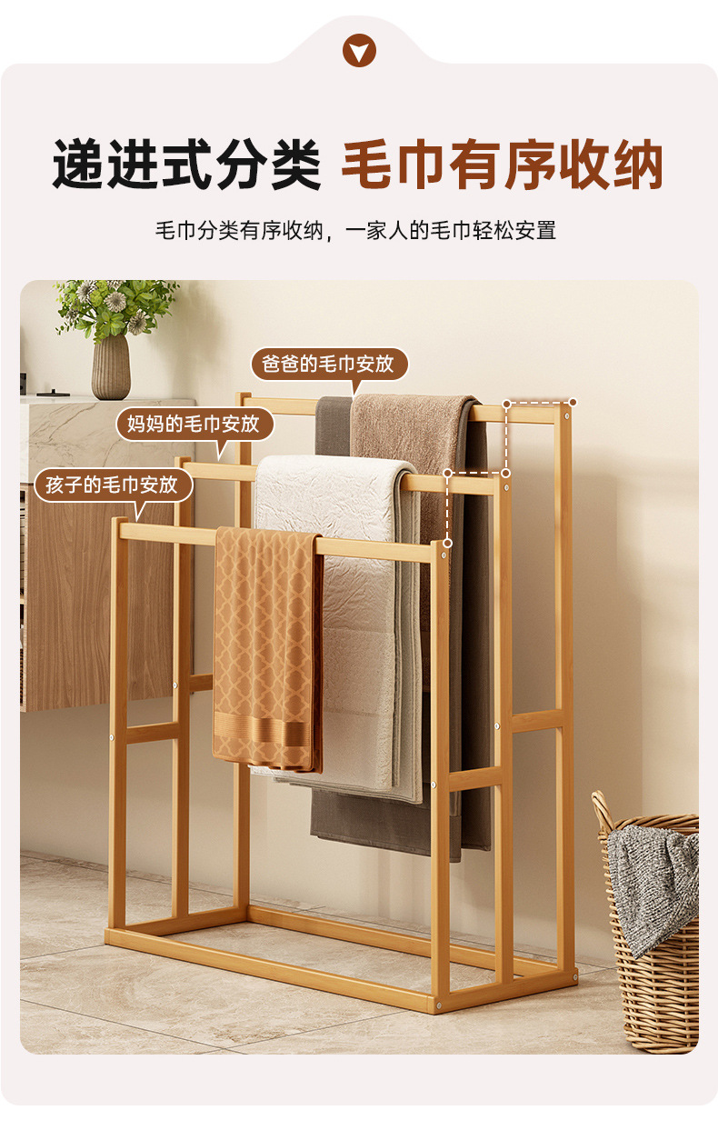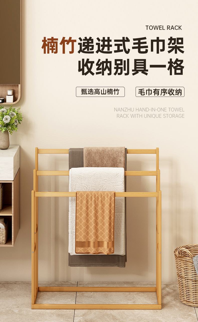 수건걸이, 욕실, 화장실, 대나무 디스플레이, 바지걸이, 수납선반, 목욕타월, 탈부착 가능, 바닥에서 간단함스토어 가기