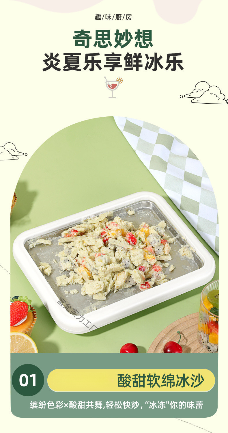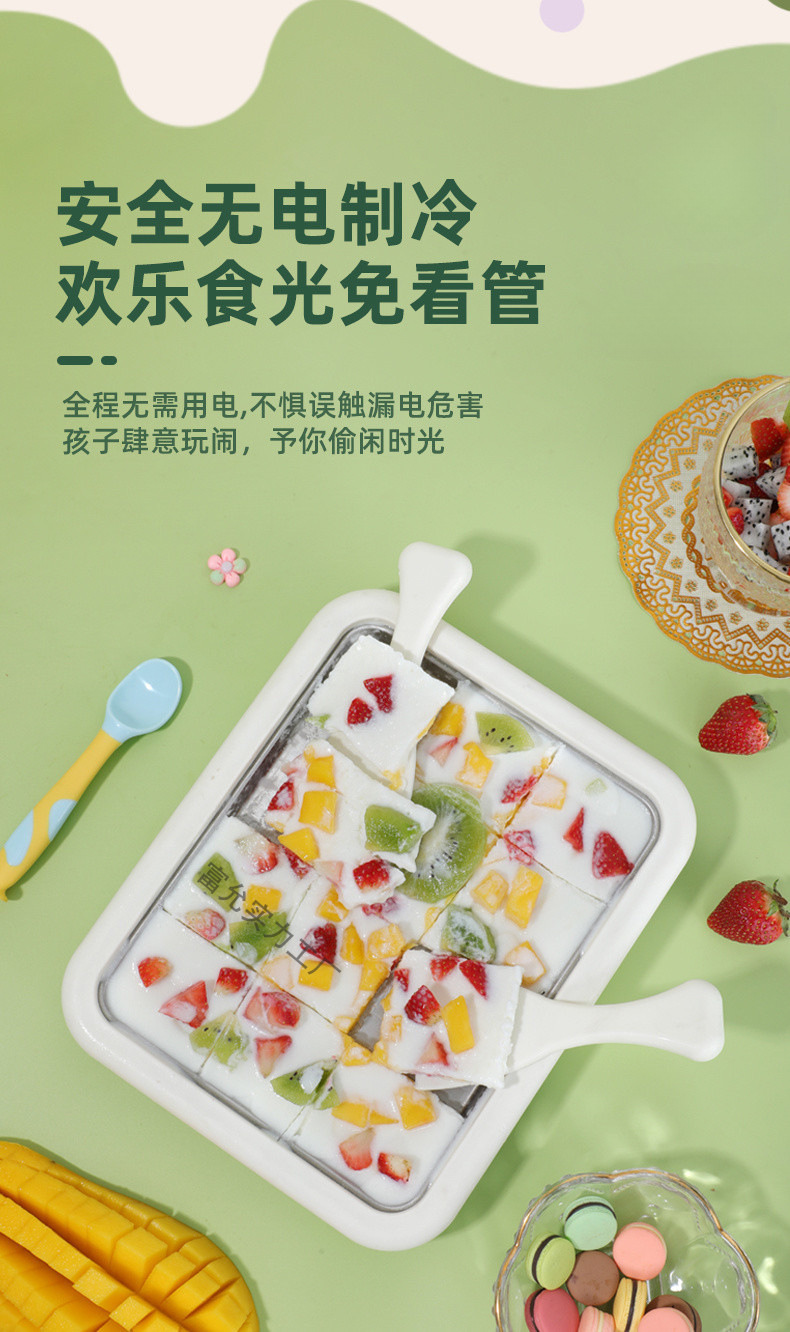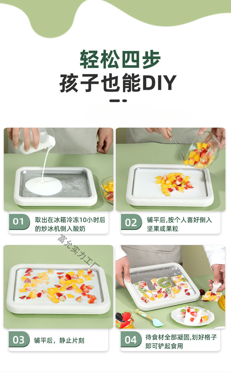 더블 볶음 얼음 기계, 소형 가정용 볶음 요구르트 기계, 어린이 요구르트 플러그 없음