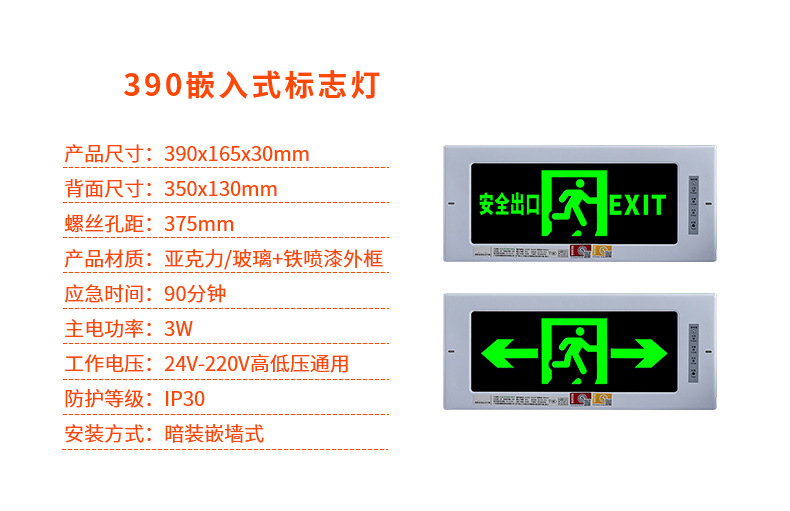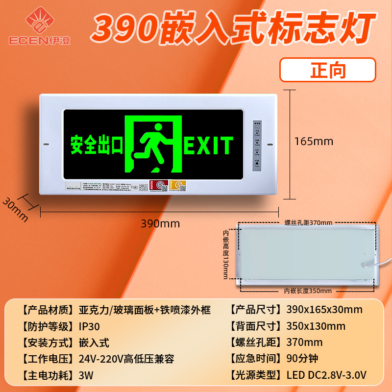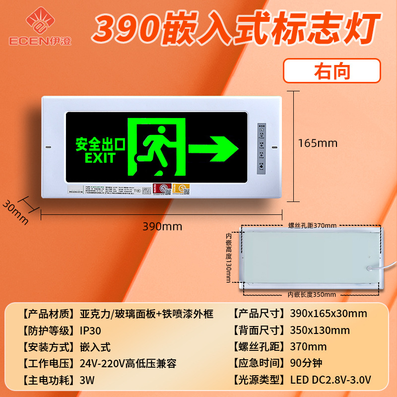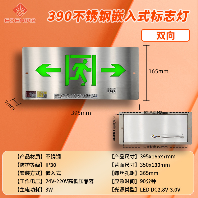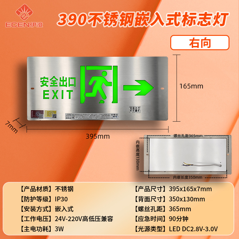 • 390 스테인리스 스틸 내장형 사인등 [우측 방향]