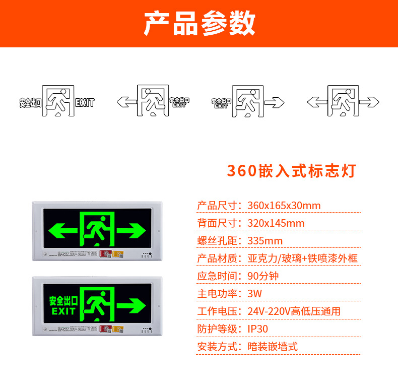 • 360 스테인리스 스틸 내장형 사인등 [우측 방향]
