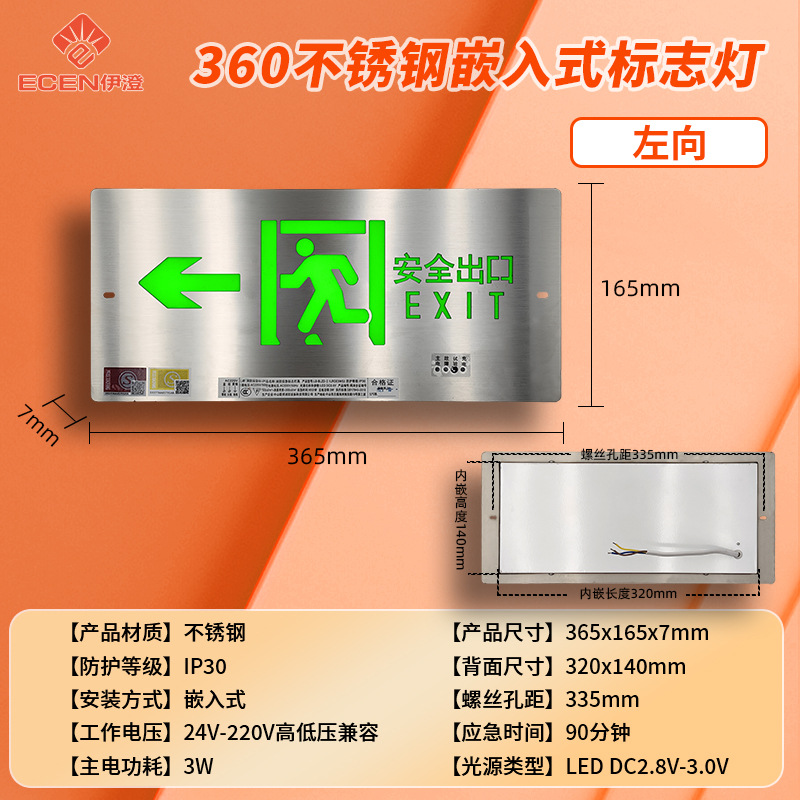 • 430 스테인리스 스틸 내장형 사인등 [왼쪽 방향]