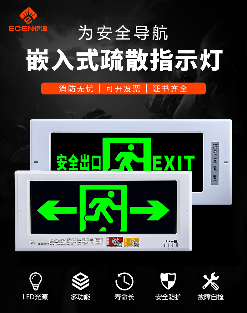 스테인레스 스틸 내장 표시 등 대피 안전 출구 표시 등 LED 조명 탈출 조명 및 숨겨진 비상 조명