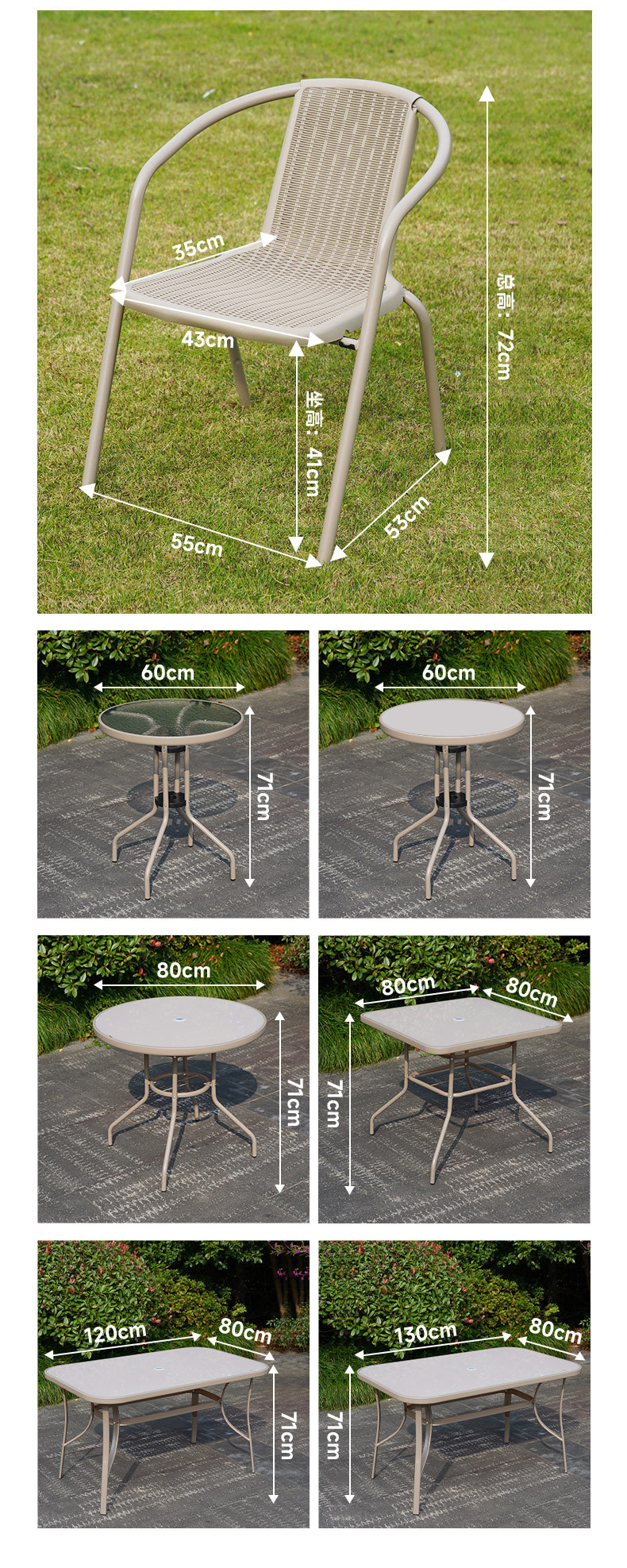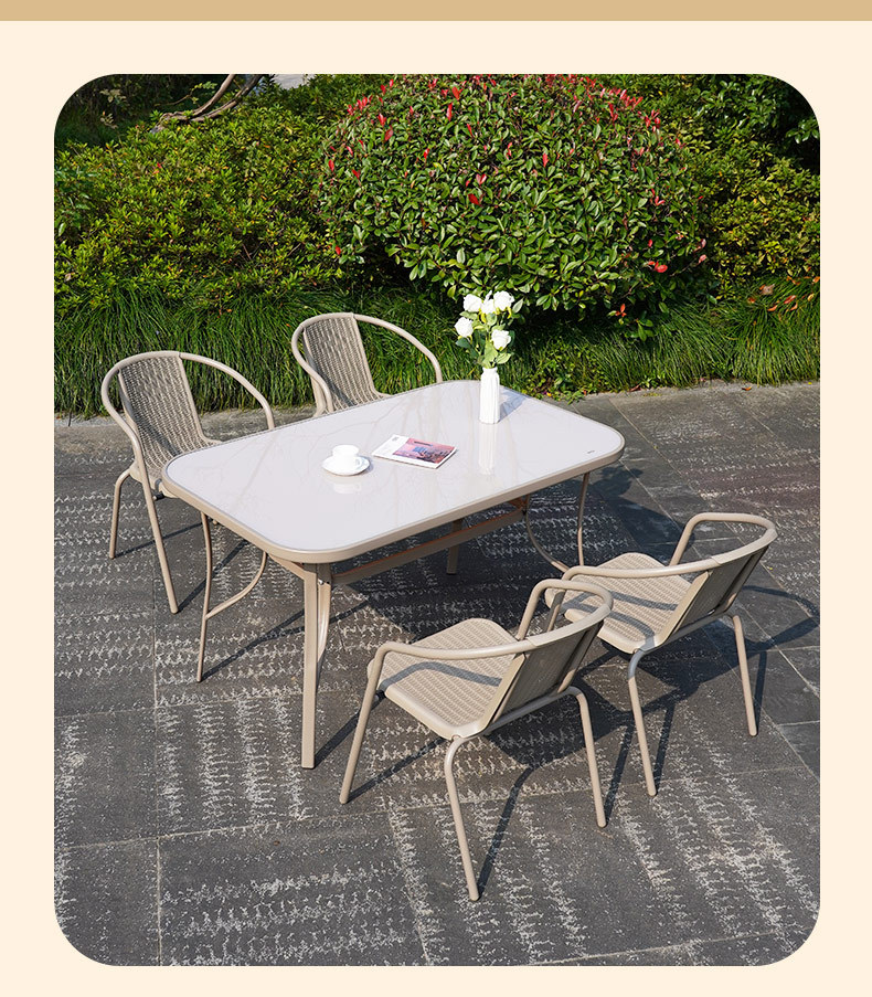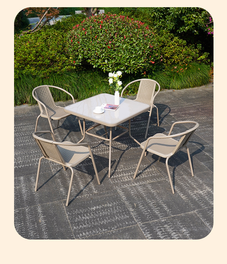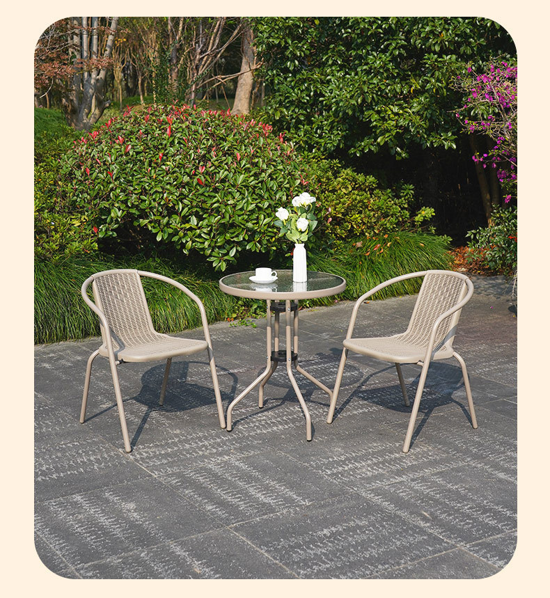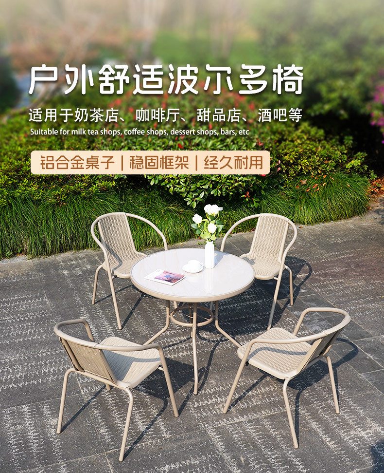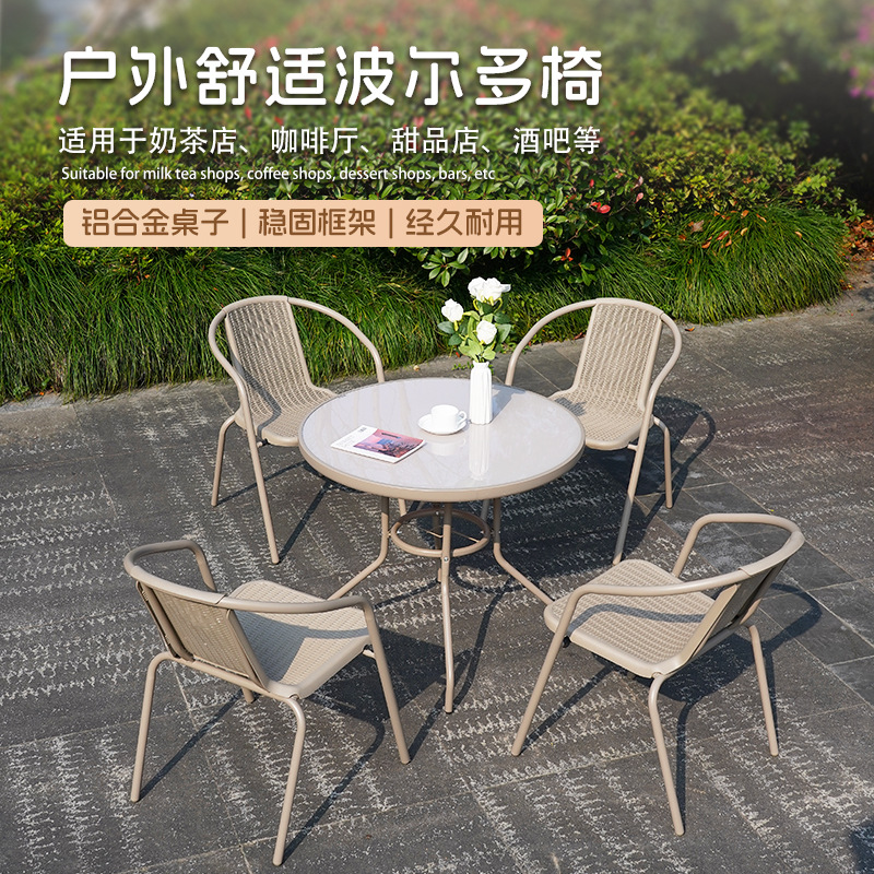야외 테이블과 의자, 안뜰 레저 테라스, 정원 작은 커피 테이블, 밀크티 가게 테이블과 의자, 상업용 방수 및 내구성이 뛰어난 야외 의자