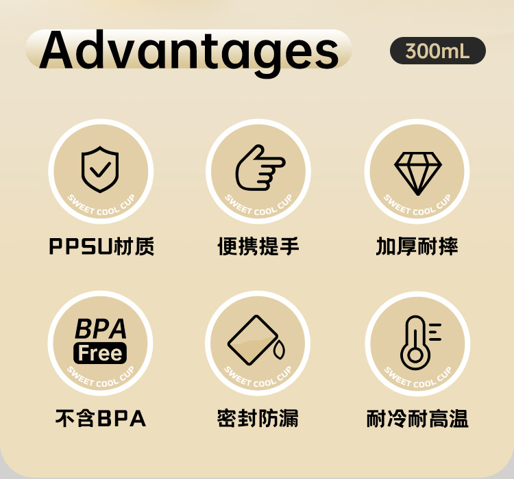 PPSU 여아용 물컵, 고급스러운 눈금, 여름 휴대용 텀블러, 누수 방지 기능, 학생용 물컵, 인기 판매
