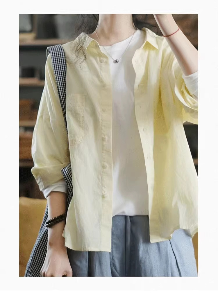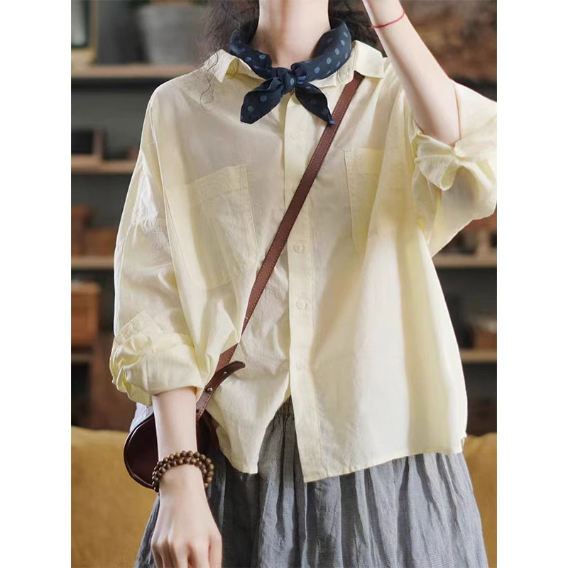 2025 봄 여름 신작 자외선 차단 카디건 셔츠 예술적 복고풍 긴팔 셔츠 여성 카디건 재킷 바닥 셔츠 탑