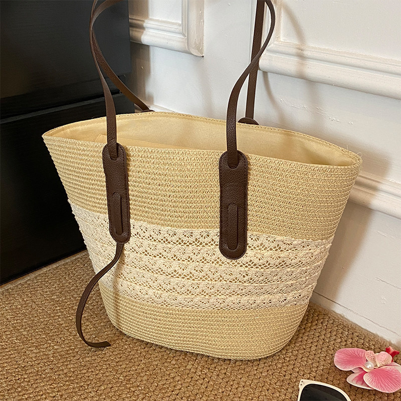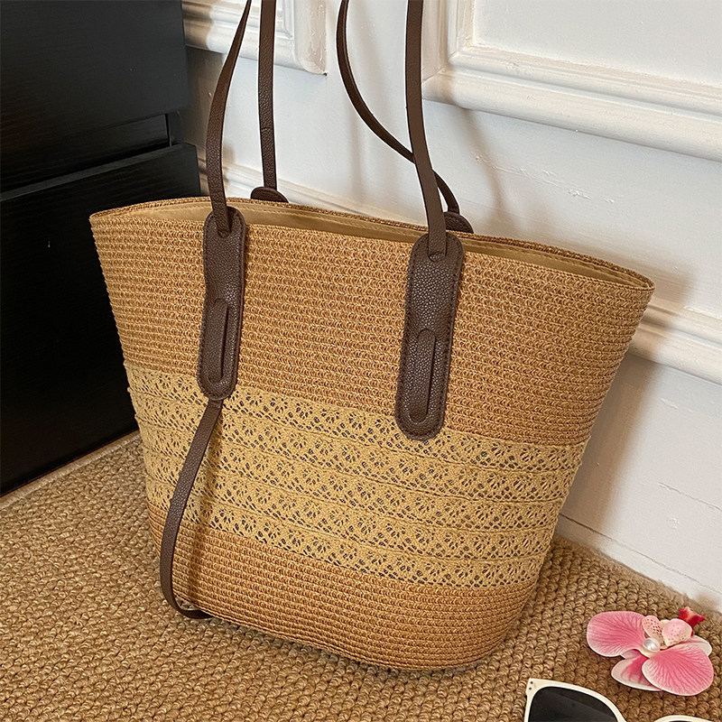여름 여행용 대용량 라탄백 2026년 신상 캐주얼 휴가 스타일 비치백 통근용 다용도 밀짚가방