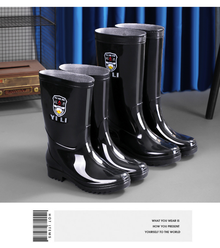 블랙 하이탑 남성용 장화, 롱탑 미끄럼 방지 남성용 장화, 내마모성 주방화, 워터부츠, 노동보호 남성화, 웨이딩고무신