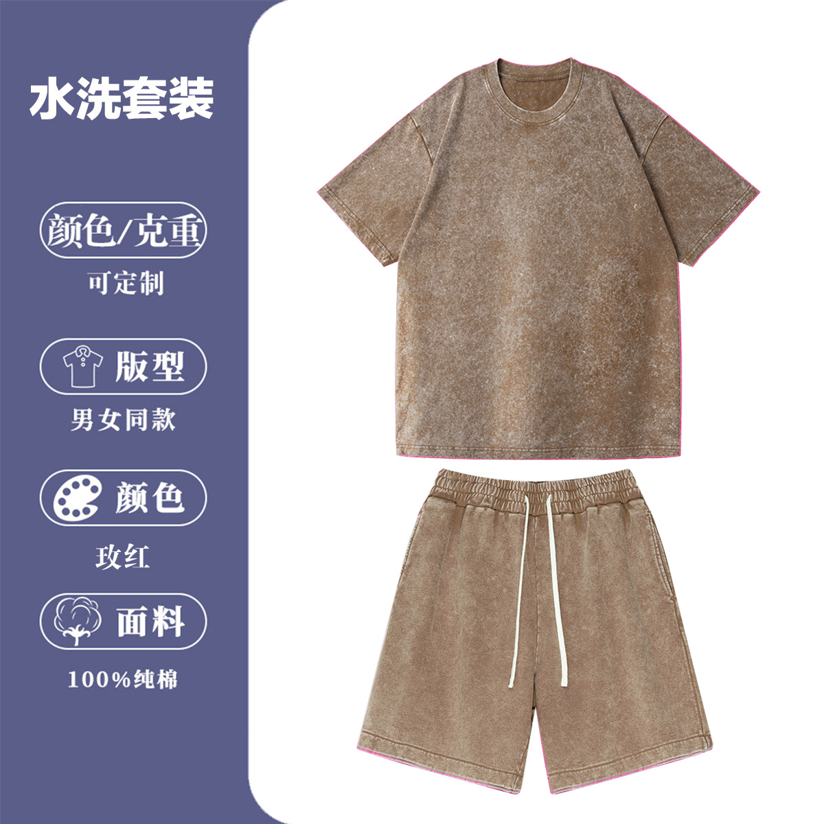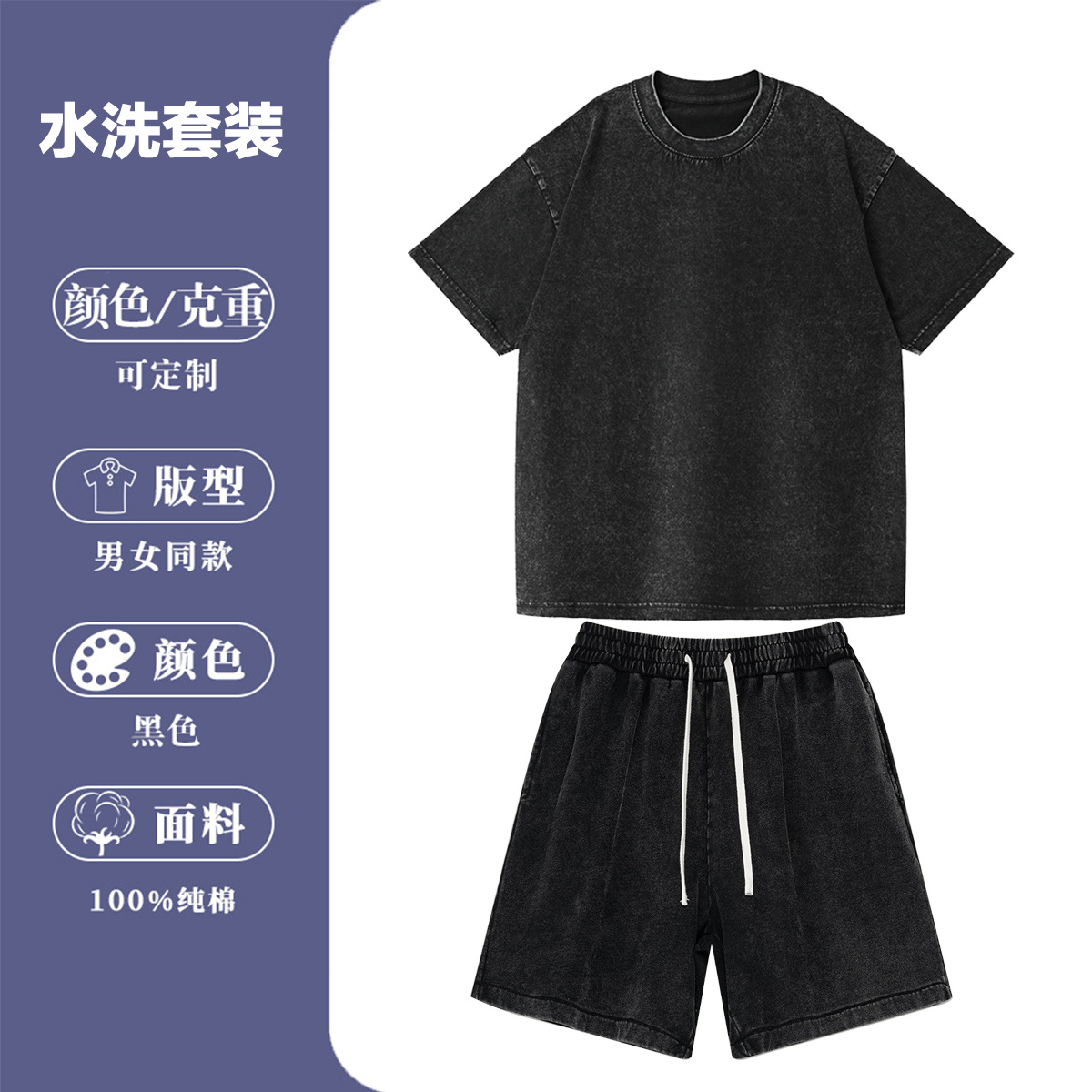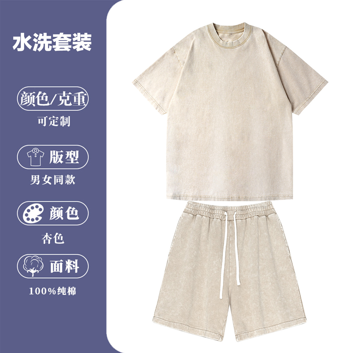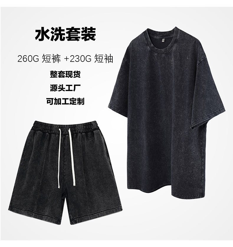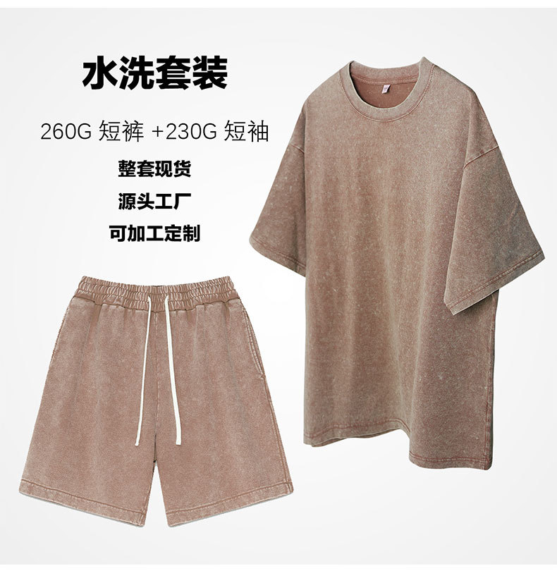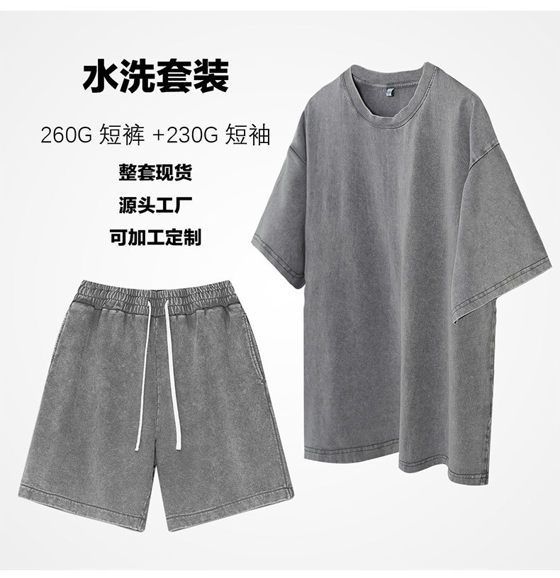 2025 새로운 크로스 보더 스포츠 및 레저 정장 남성용 반팔 반바지 순수 코튼 워시 올드 스팟 도매 여름스토어 가기