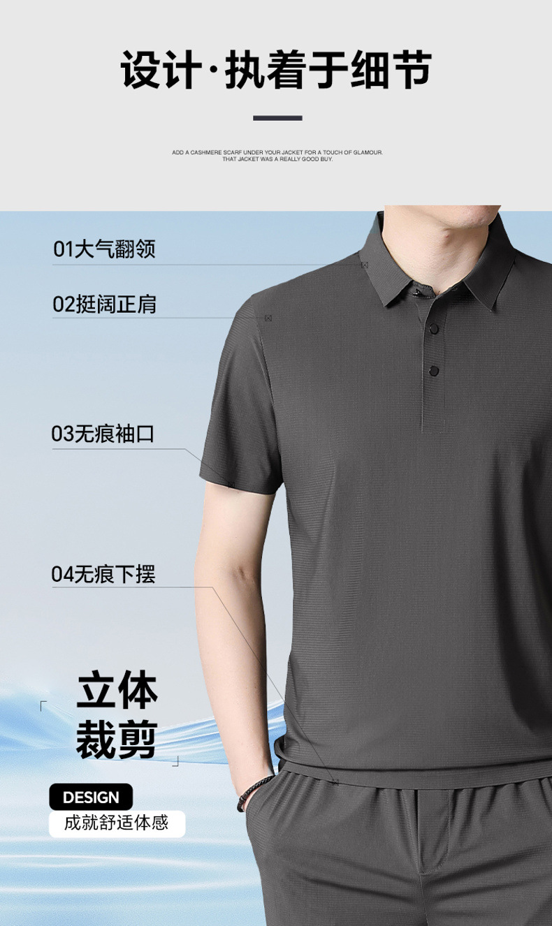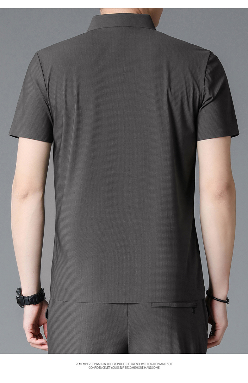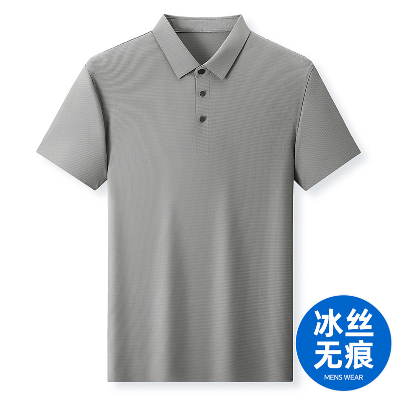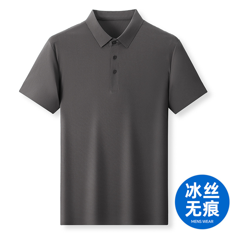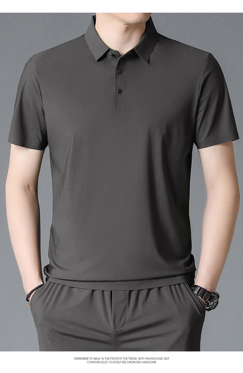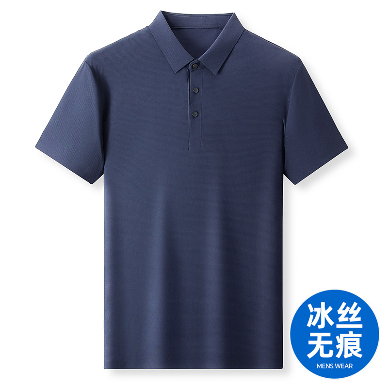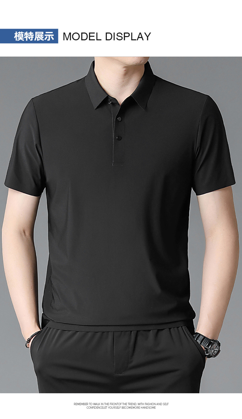 젊은 및 중년 비즈니스 반팔 탑 남성 티셔츠를 위한 고탄성 이음매 없는 얼음 실크 와플 솔리드 컬러 이음매 없는 폴로 셔츠스토어 가기