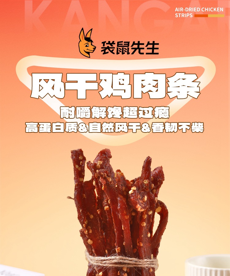 미스터 캥거루 건조 닭가슴살 스트립, 손으로 찢은 쫄깃한 즉석식품, 고단백, 갈망을 해소하는 캐주얼 오피스 스낵스토어 가기