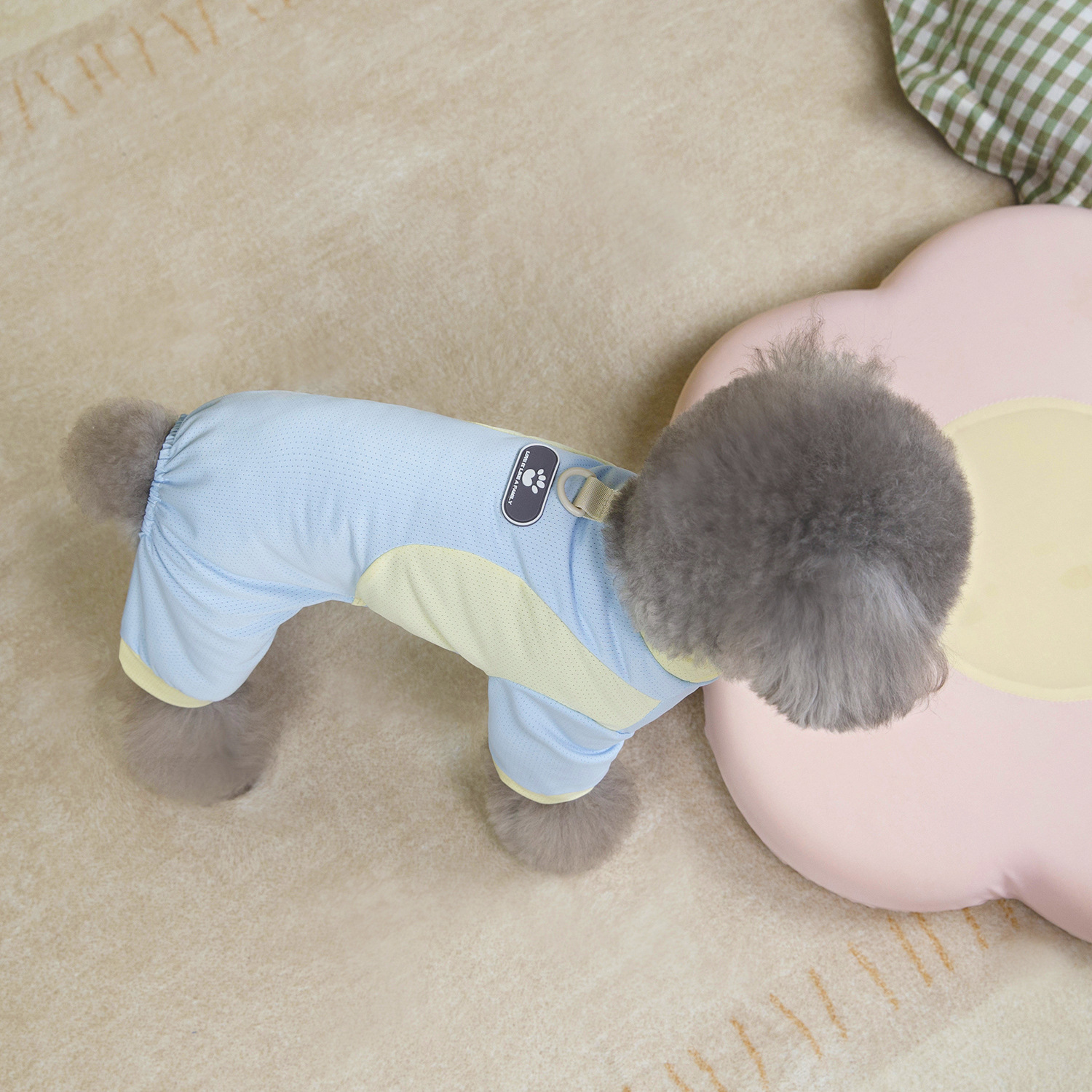 봄과 여름 얇은 애완 동물 옷 시원한 얼음 메쉬 통기성 개 옷 고양이 테디 비숑 네 발 옷
