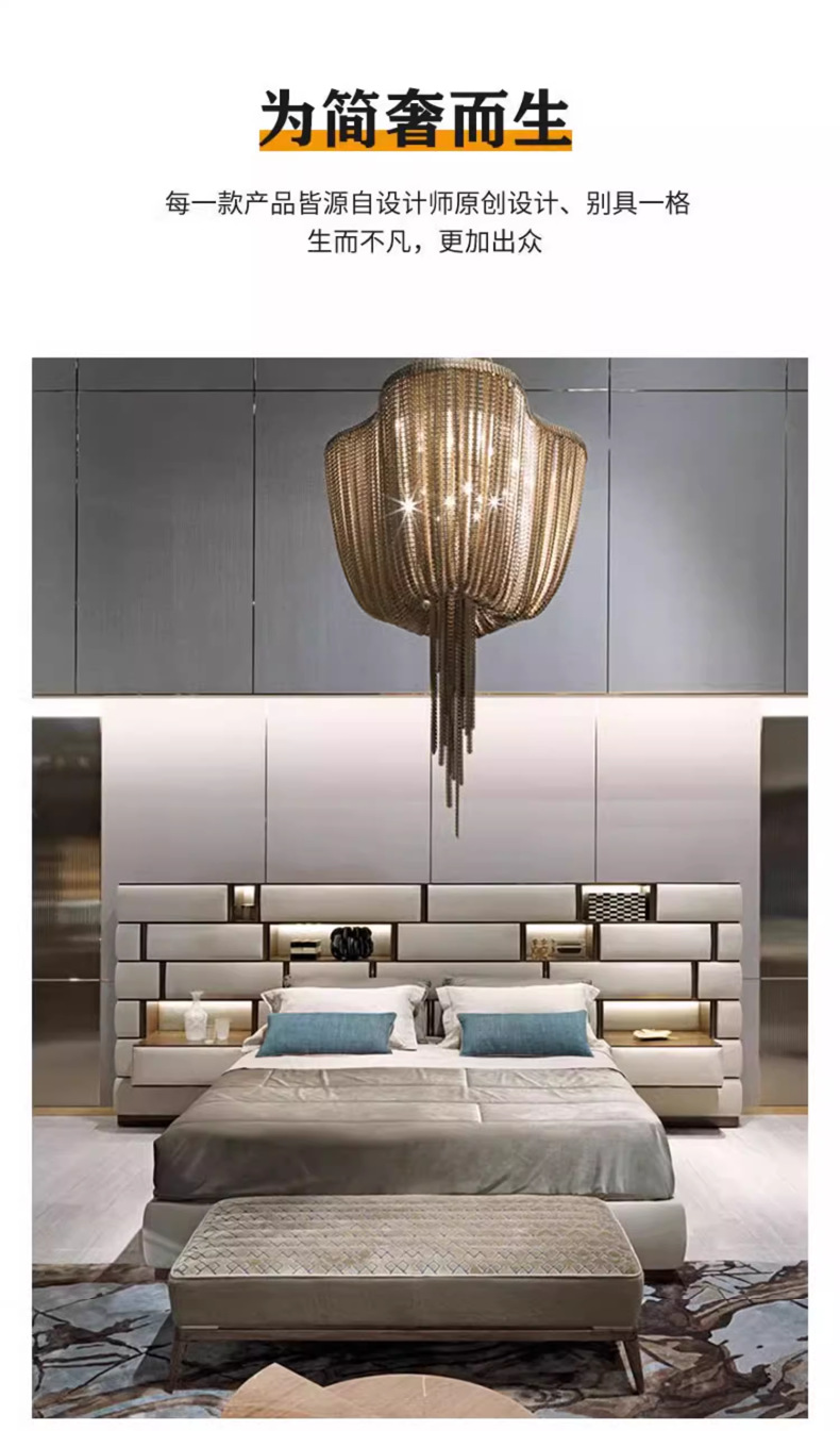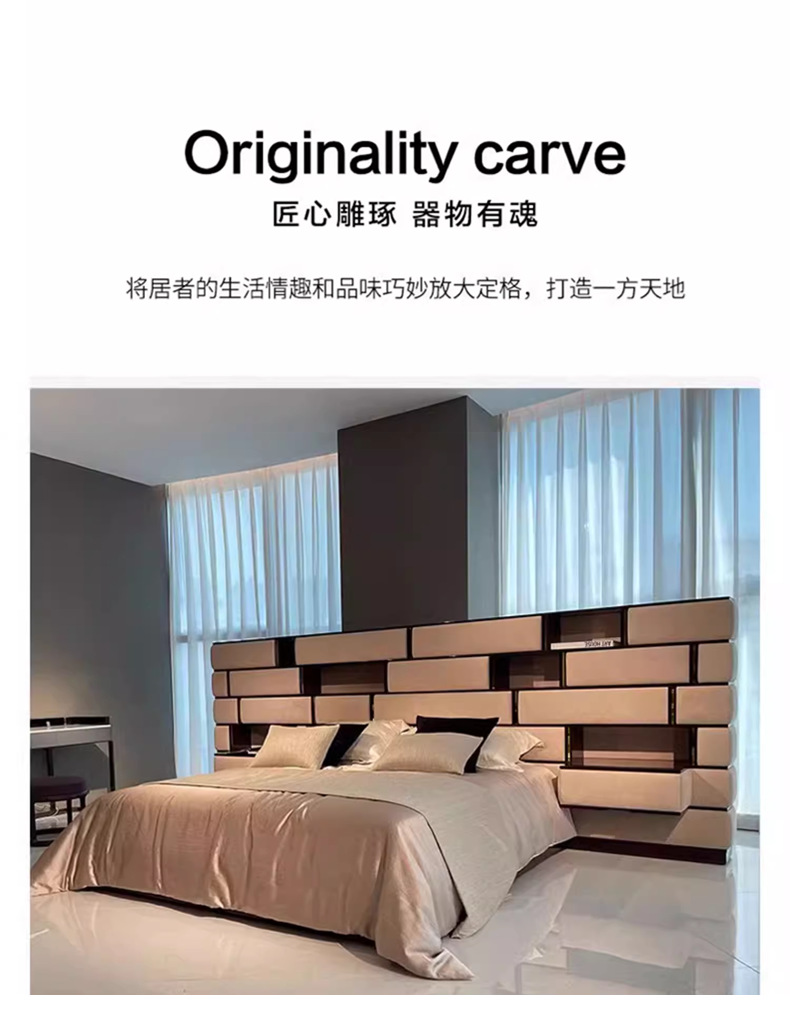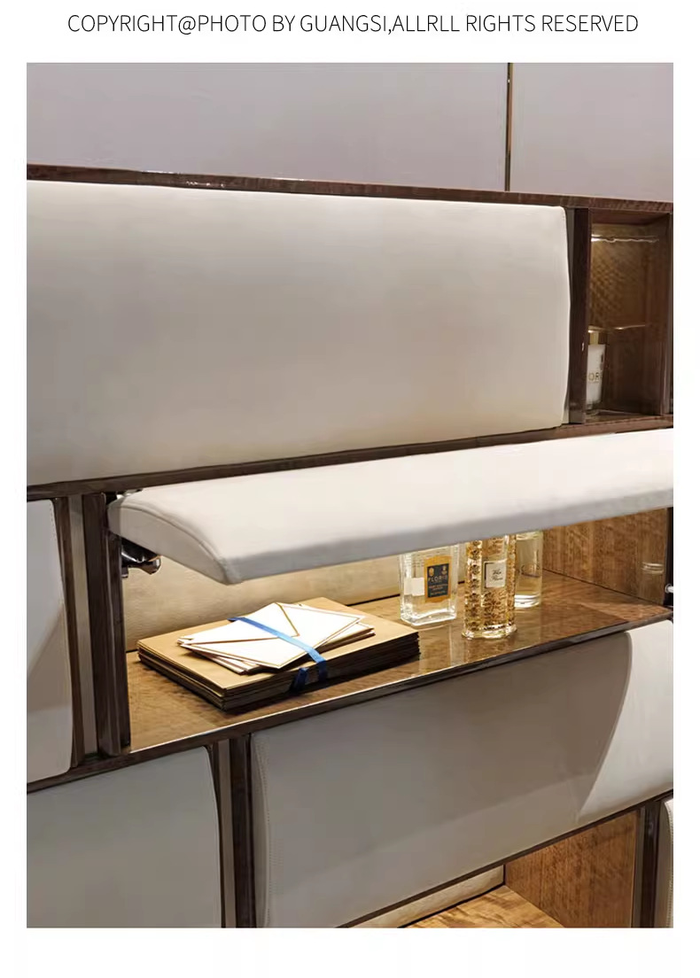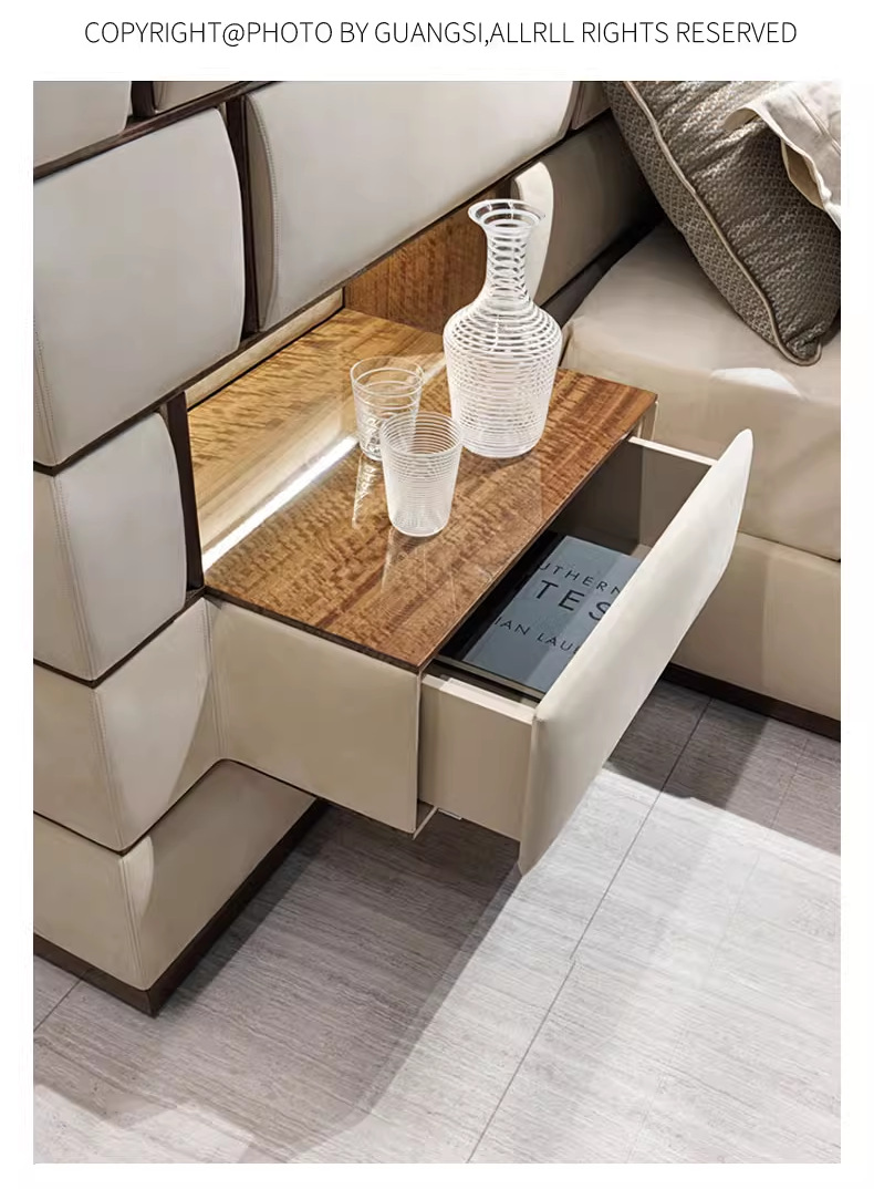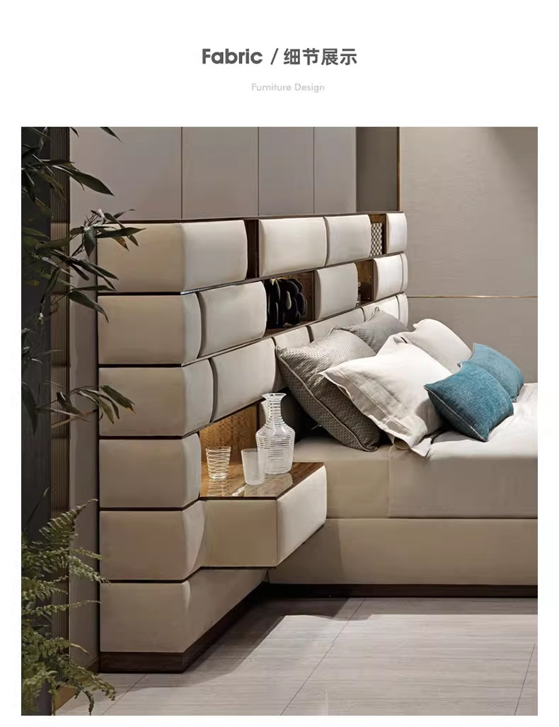 이탈리아 디자이너 와이드 스크린 침대 라이트 럭셔리 모던 더블 침대 럭셔리 빌라 대형 평면 반투명 가죽 마스터 침대스토어 가기