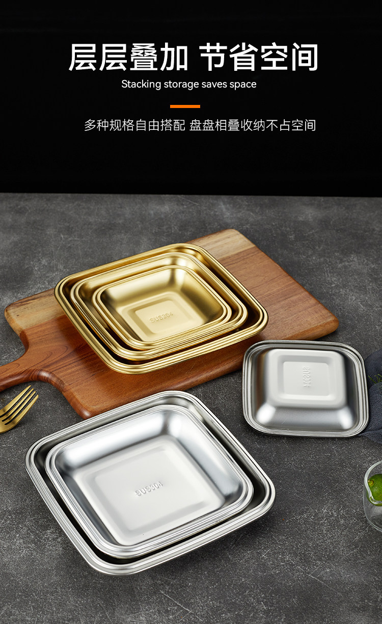 한국 스낵 접시 304 스테인레스 스틸 바베큐 접시 차가운 요리 접시 디저트 접시 과자 접시 새우 슬라이드 접시 사각형 접시 플랫 트레이