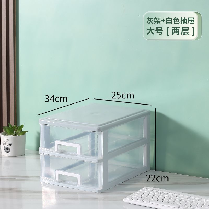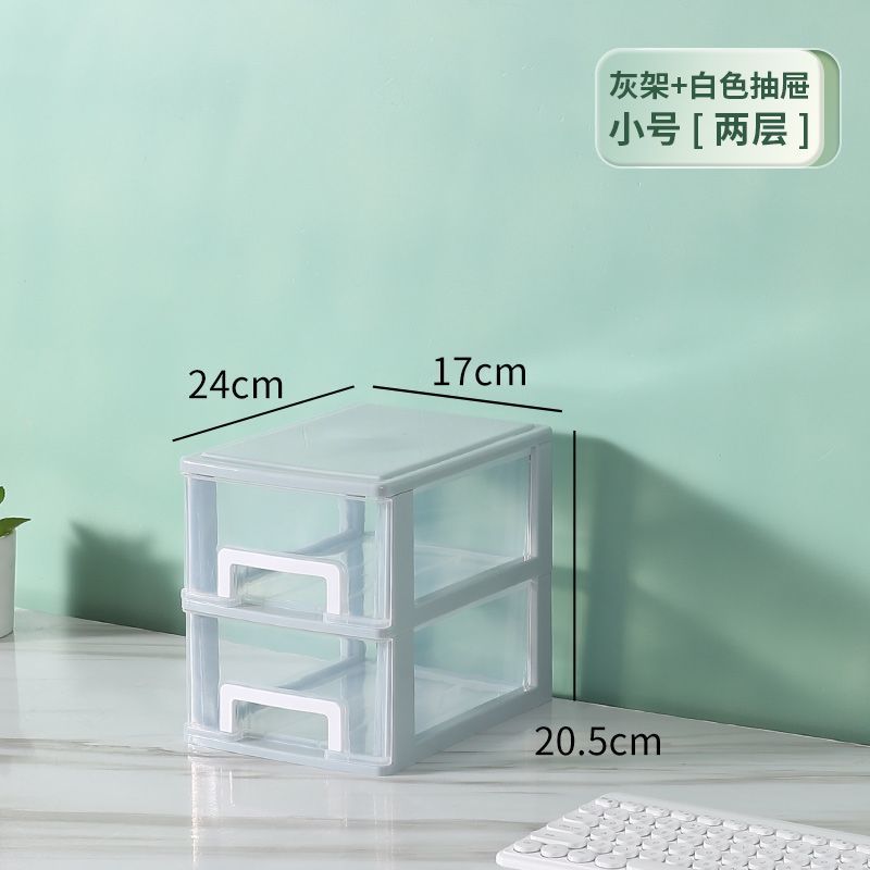 • 소형 2단[회색 프레임+투명 흰색 서랍]