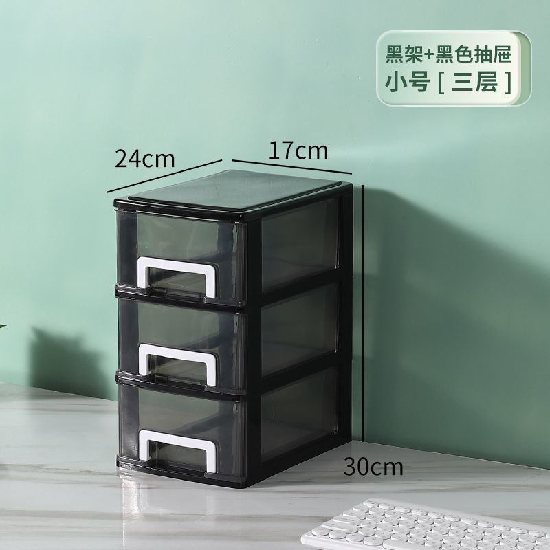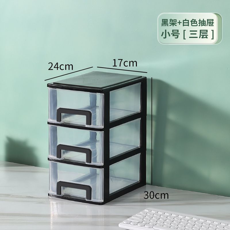• 소형 3단[검은색 프레임+투명 흰색 서랍]