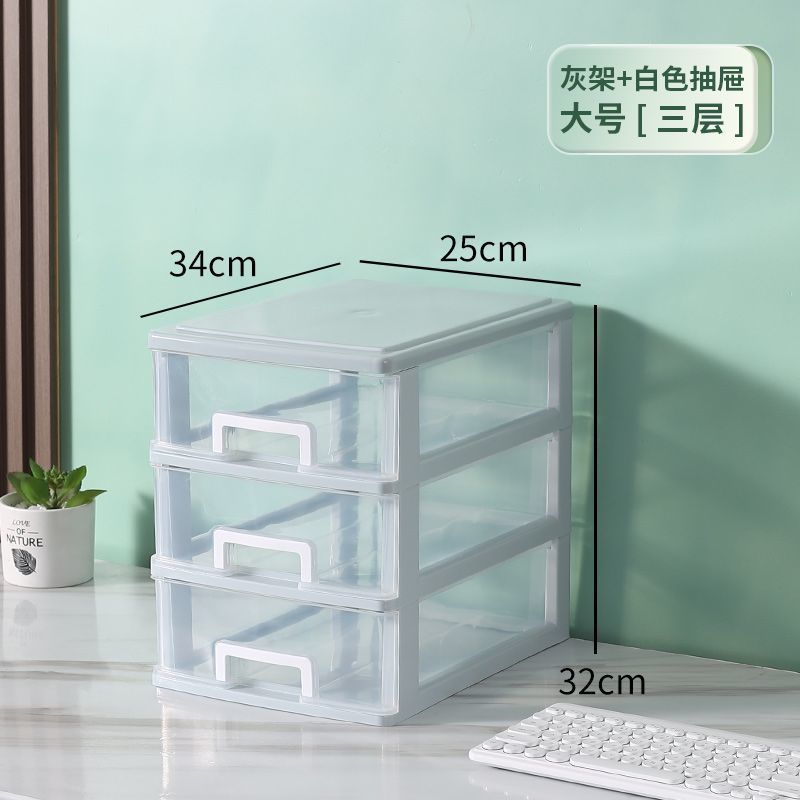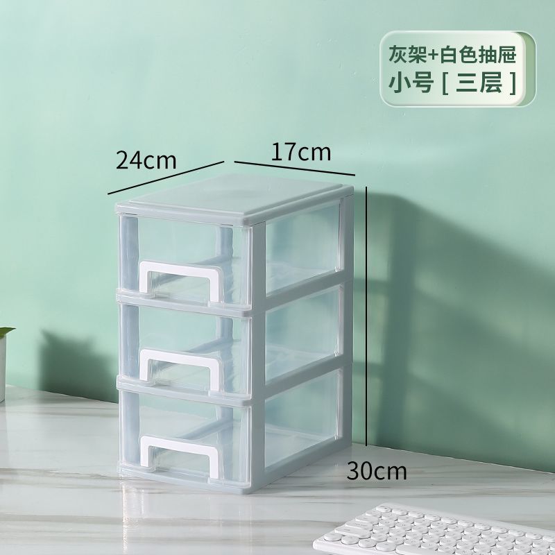 • 소형 3단[회색 프레임+투명 흰색 서랍]