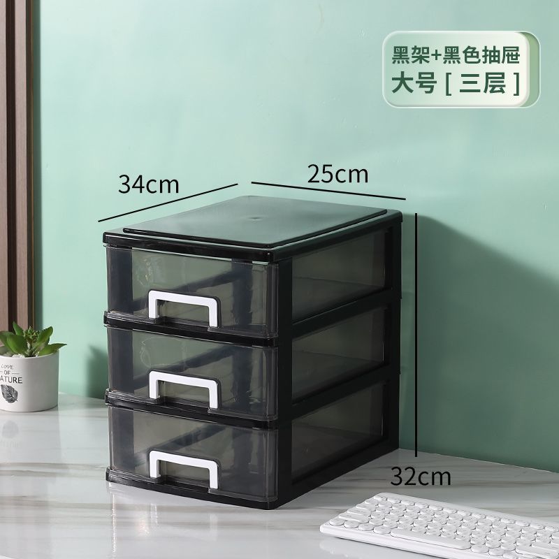 • 대형 3단[블랙 프레임+투명 블랙 서랍]