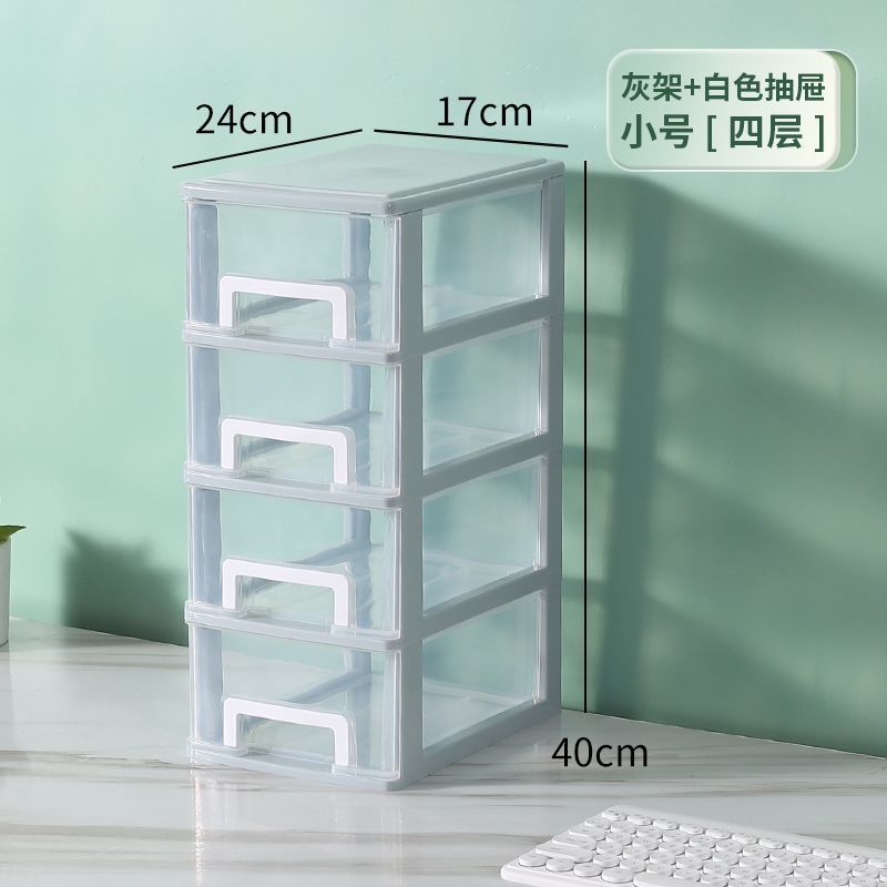 • 소형 4단[회색 프레임+투명 흰색 서랍]