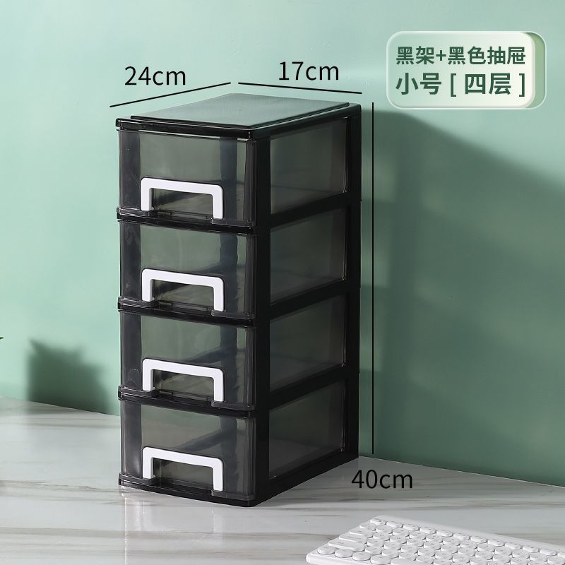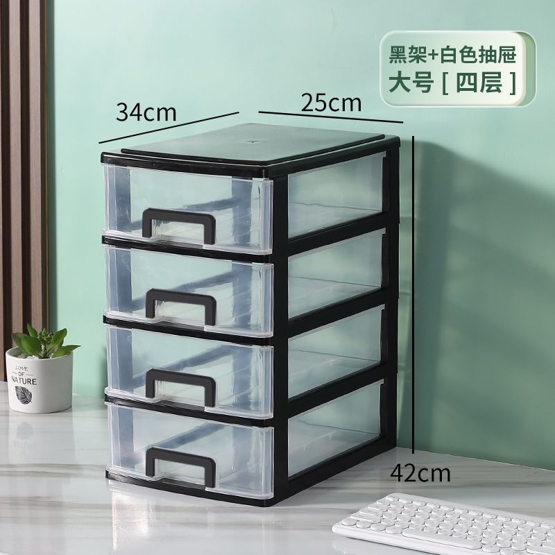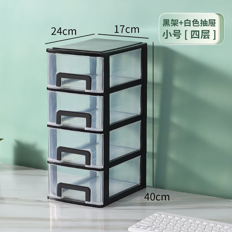 • 소형 4단[검은색 프레임+투명 흰색 서랍]