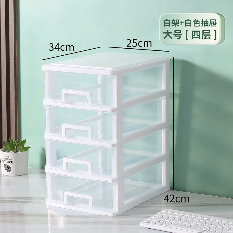 • 대형 4단[화이트 프레임+투명 화이트 서랍]
