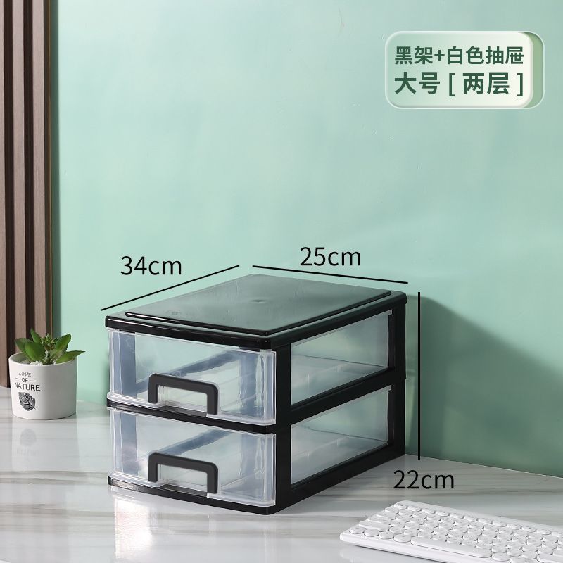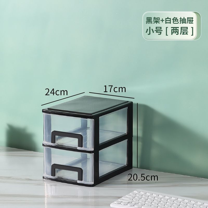 • 소형 2단[검은색 프레임+투명 흰색 서랍]