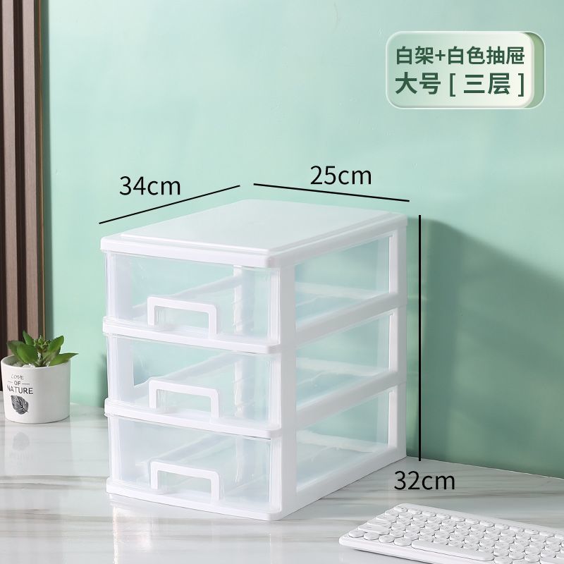 • 대형 3단[화이트 프레임+투명 화이트 서랍]