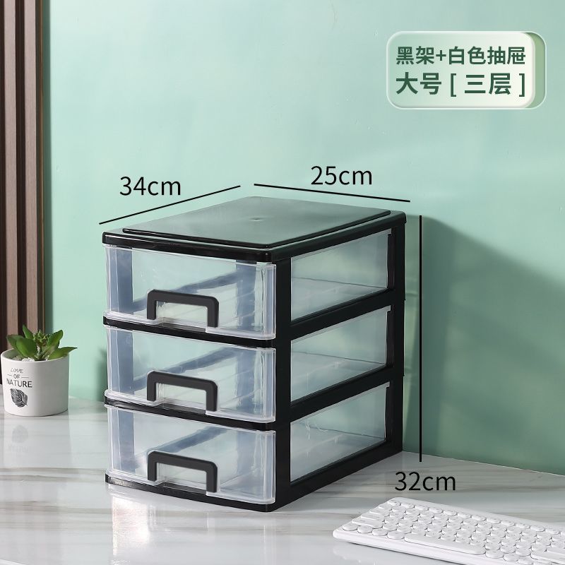 • 대형 3단[검은색 프레임+투명 흰색 서랍]