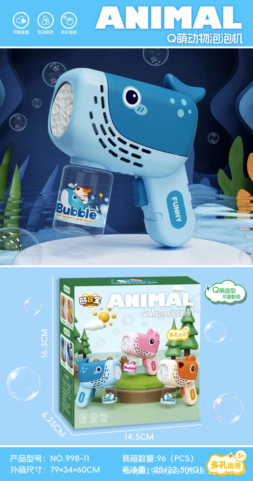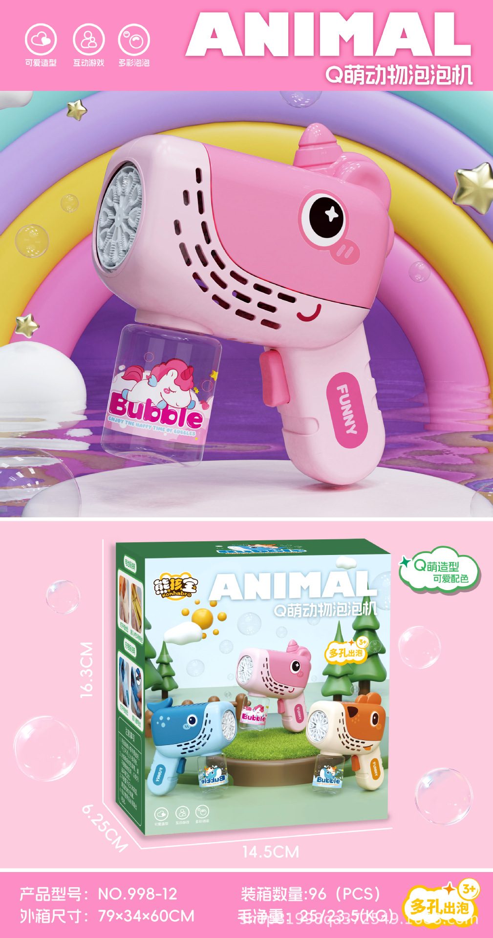 2025 새로운 어린이 만화 동물 버블 머신 소년과 소녀를위한 휴대용 버블 건 버블 장난감 선물