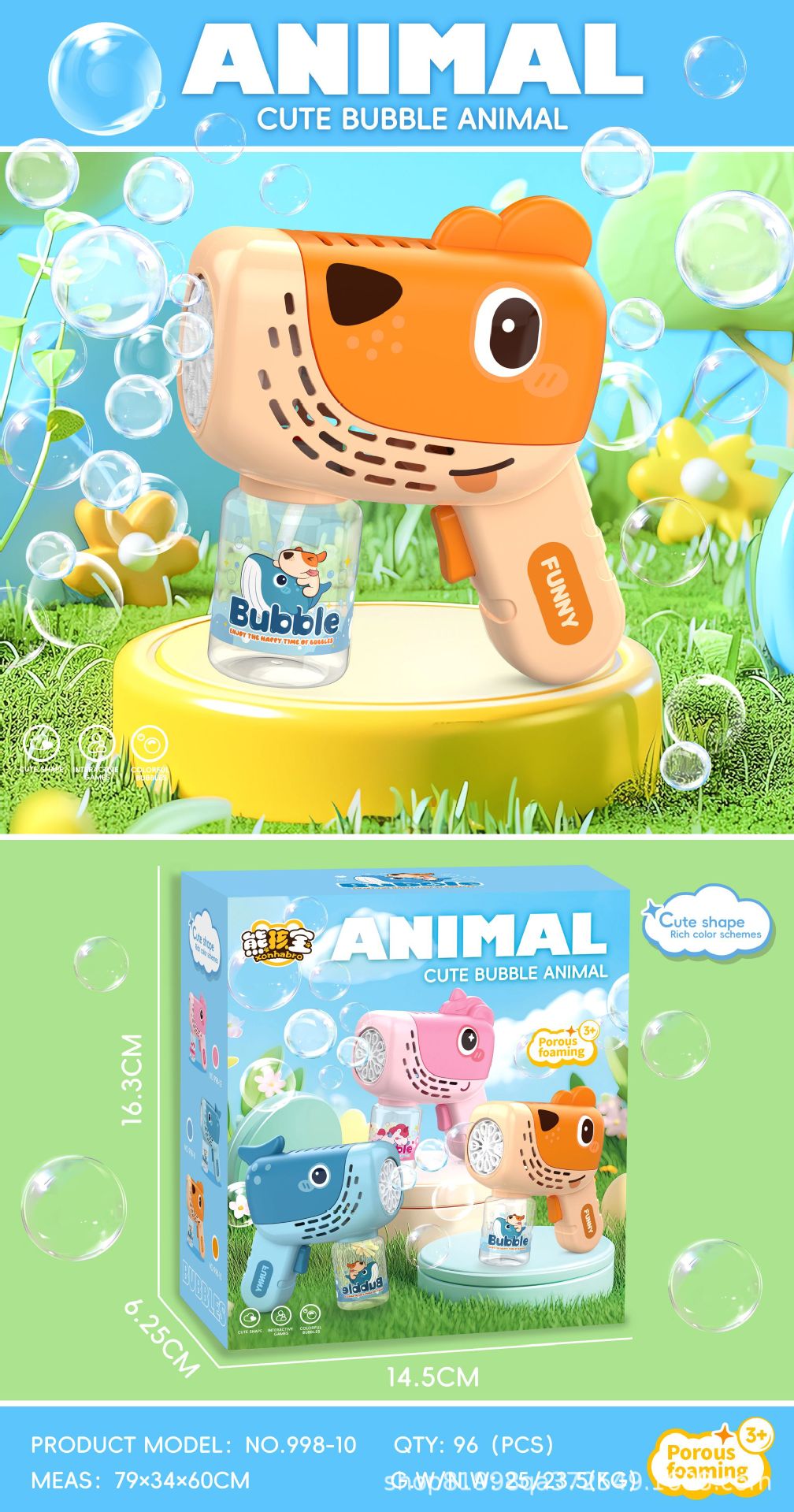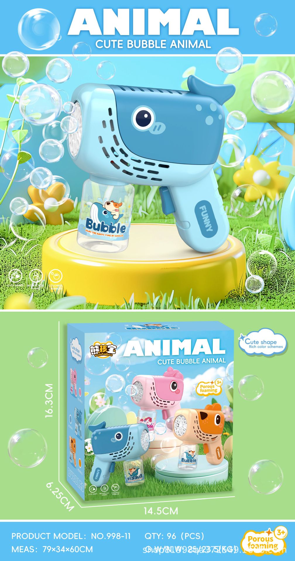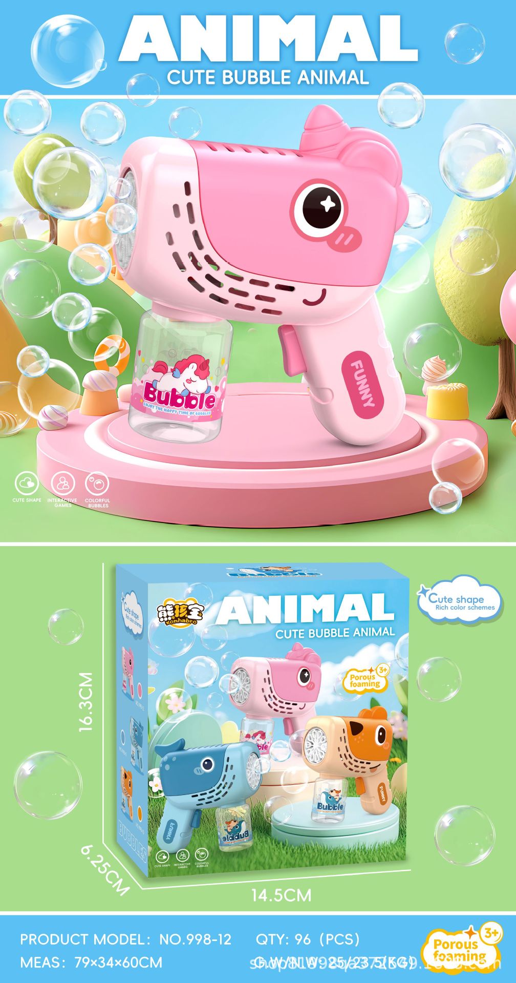 2025 새로운 어린이 만화 동물 버블 머신 소년과 소녀를위한 휴대용 버블 건 버블 장난감 선물스토어 가기