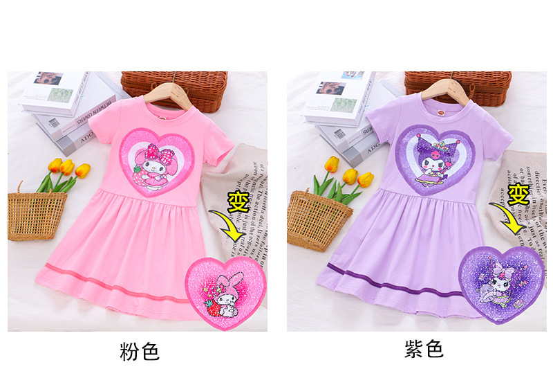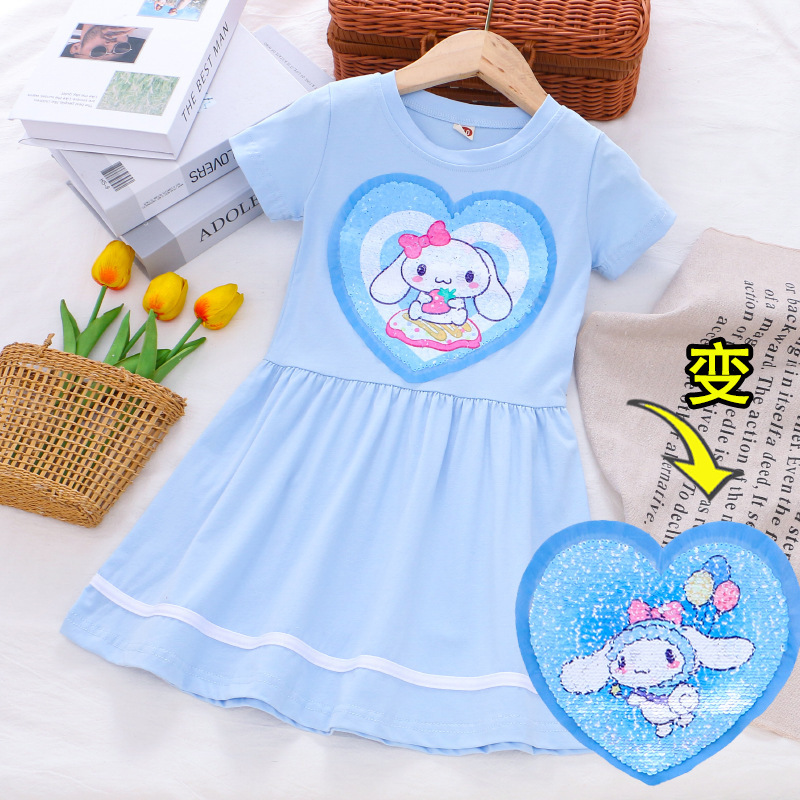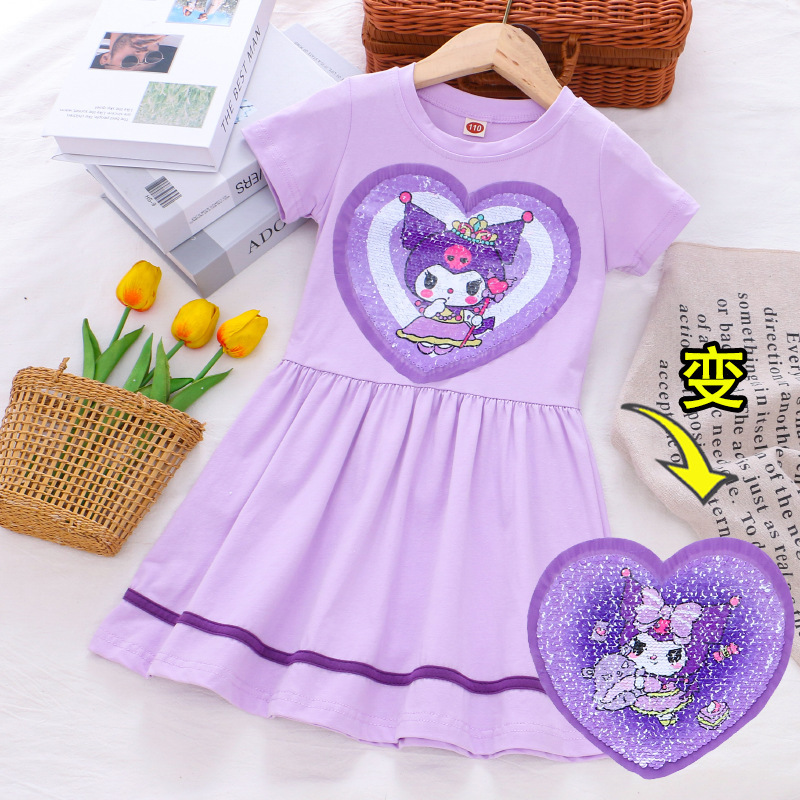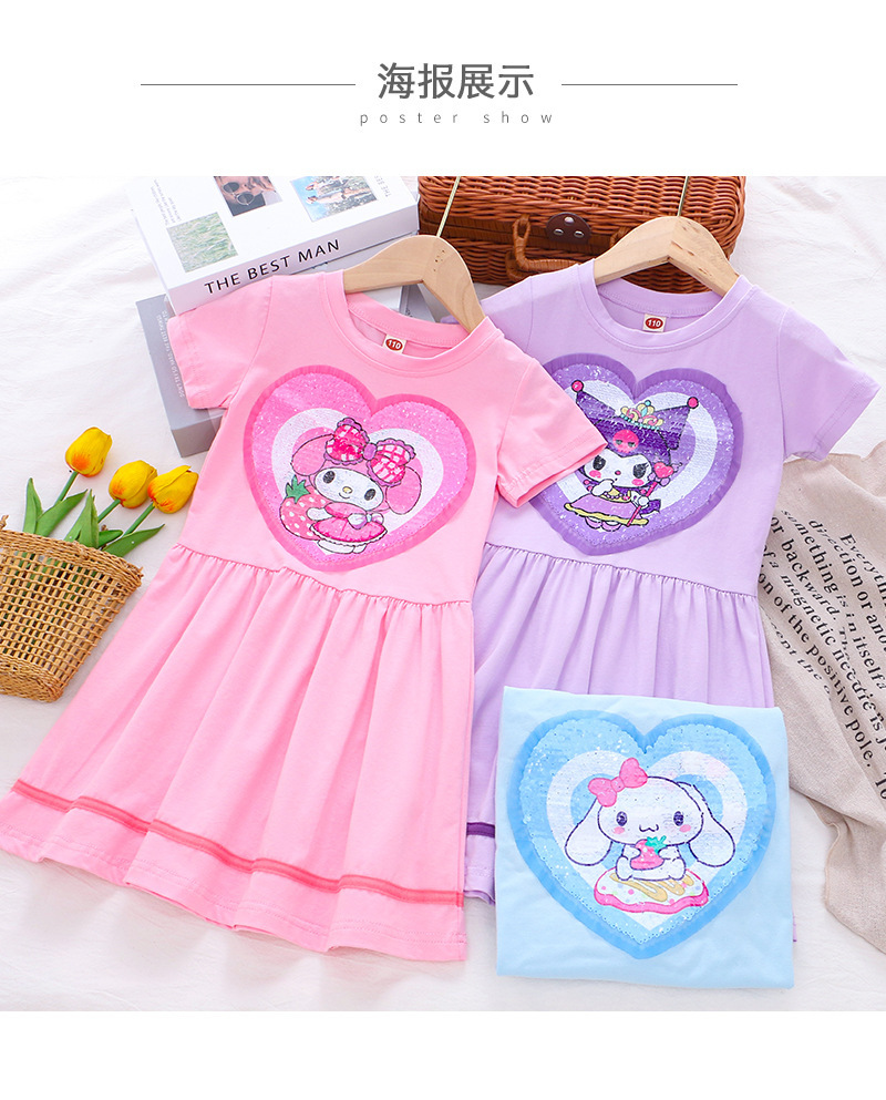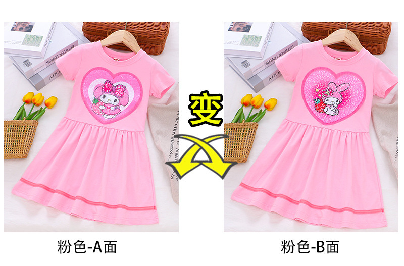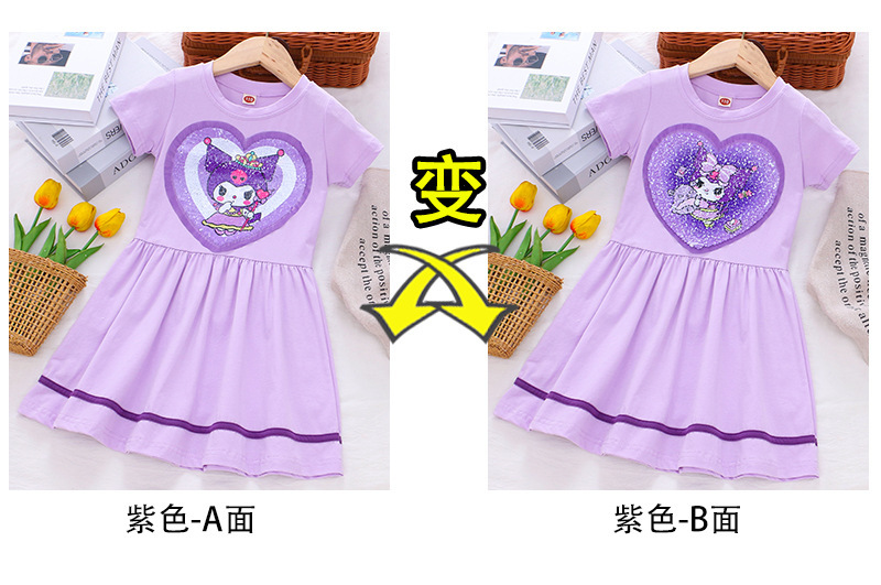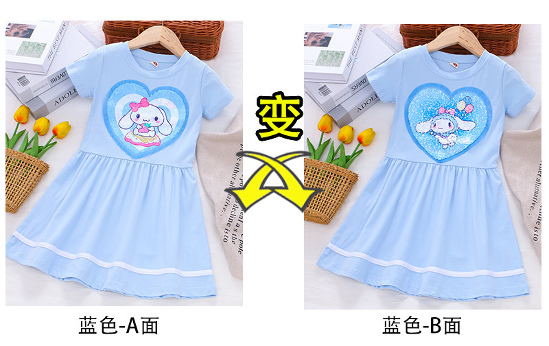 대외 무역 크로스 보더 소녀 2025 여름 드레스 아름다운 소녀 여름 플립 컬러 변경 스팽글 공주 드레스 만화