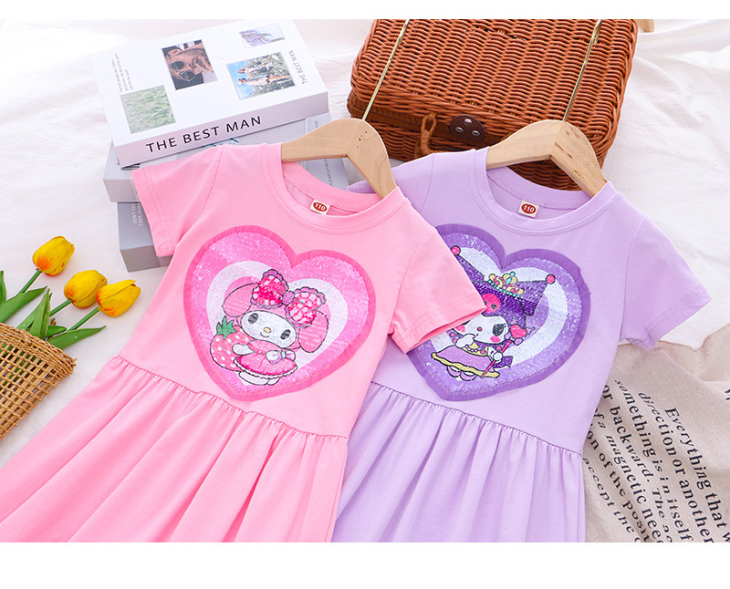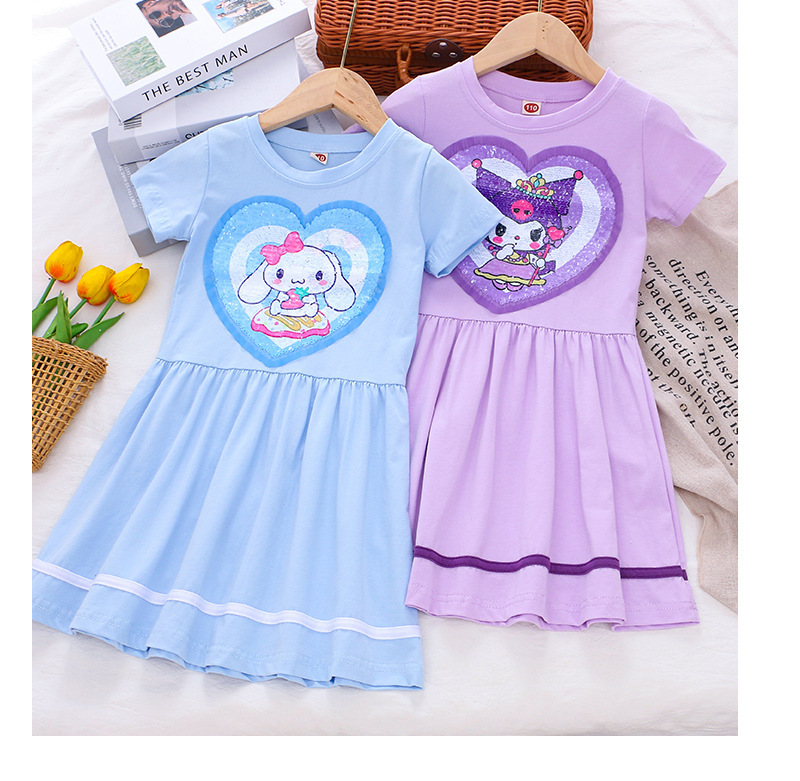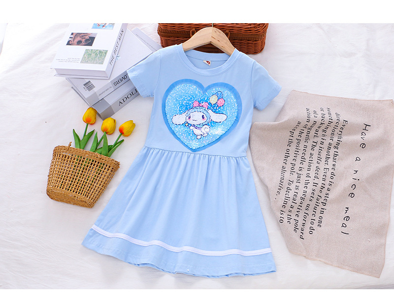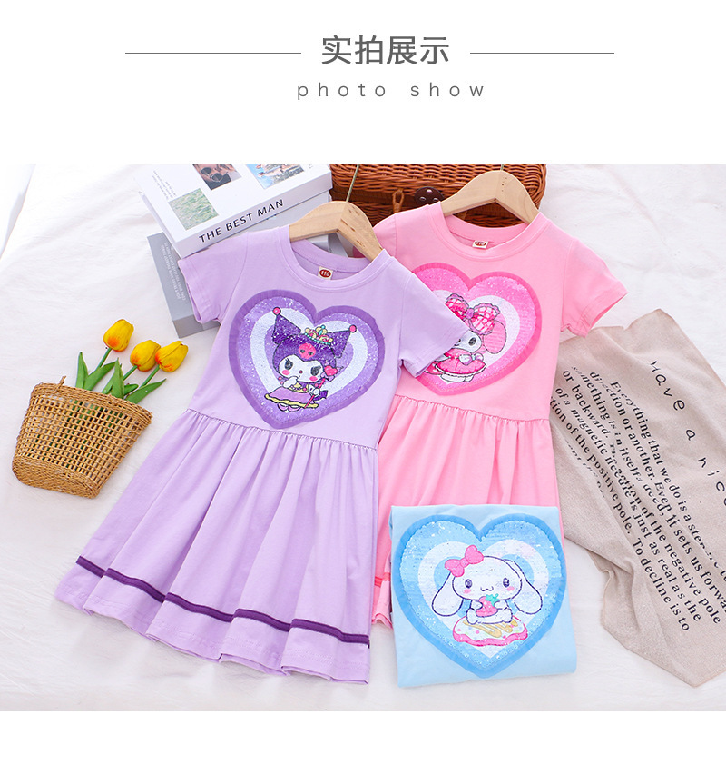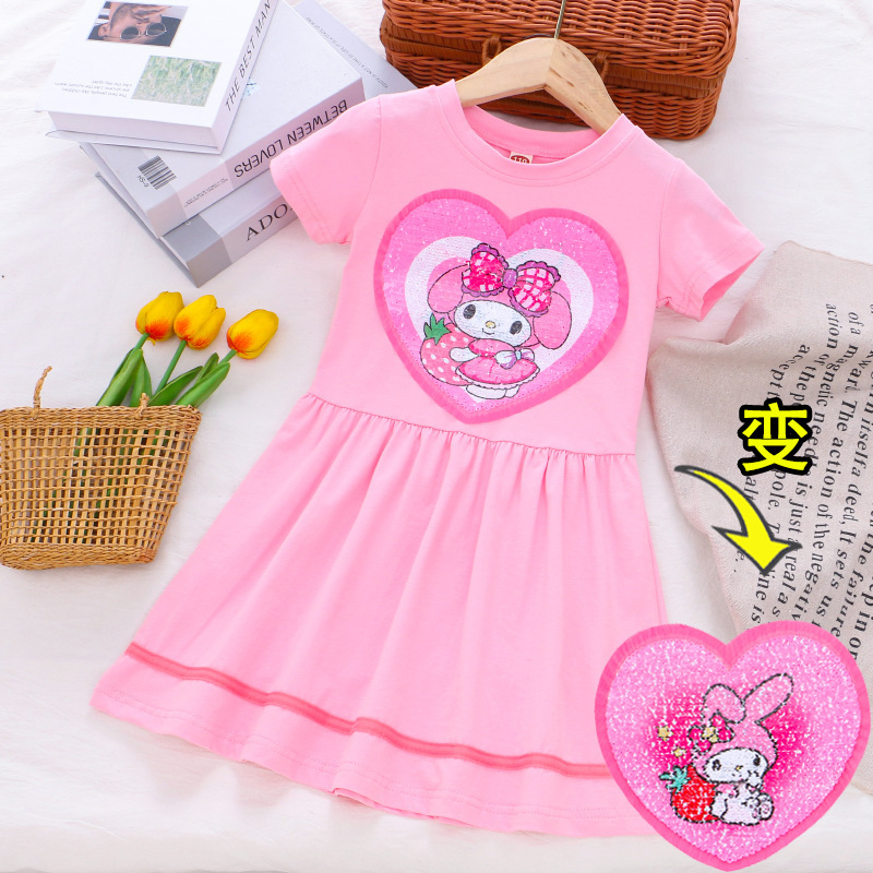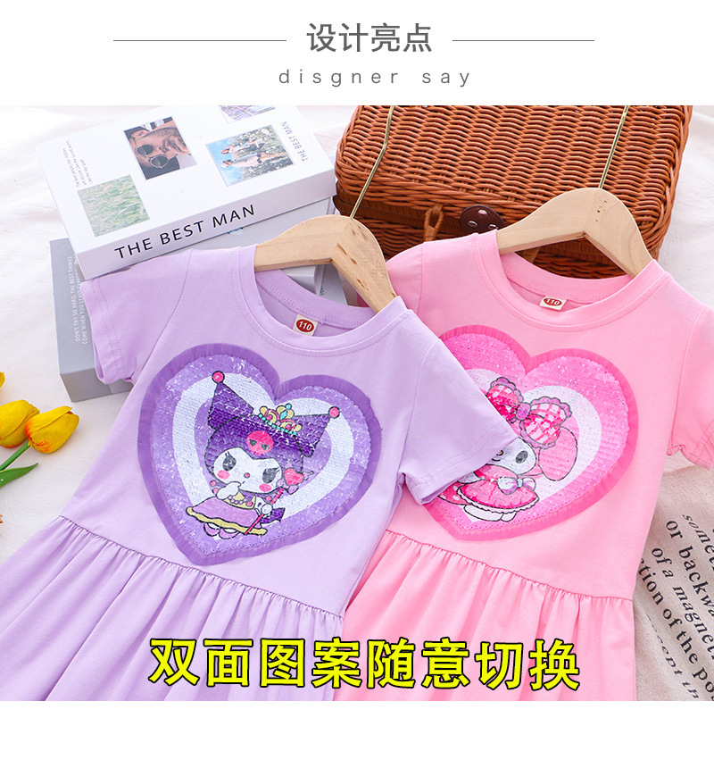 대외 무역 크로스 보더 소녀 2025 여름 드레스 아름다운 소녀 여름 플립 컬러 변경 스팽글 공주 드레스 만화