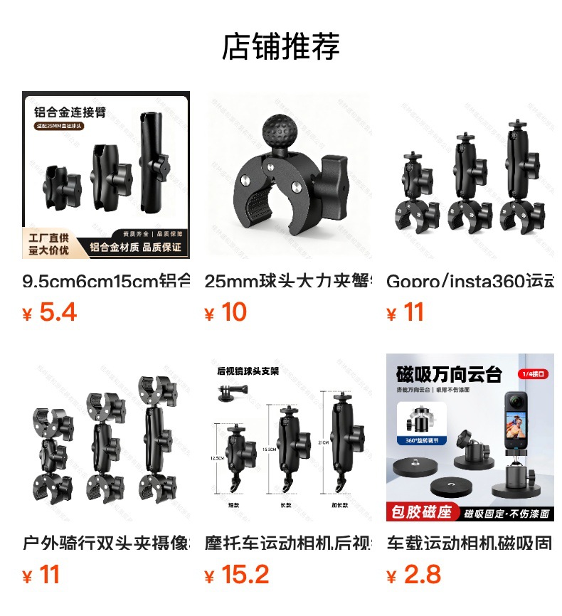 휴대폰 거치대 액세서리, 오토바이 및 전기차용 알루미늄 합금 25mm 볼헤드, m6m10 볼헤드 연결봉스토어 가기