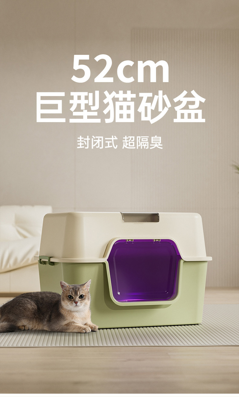 • [업그레이드된 UV살균 모델] 그린 + 고양이 모래 매트 (고양이 모래 국자 + 탈취봉투 포함)